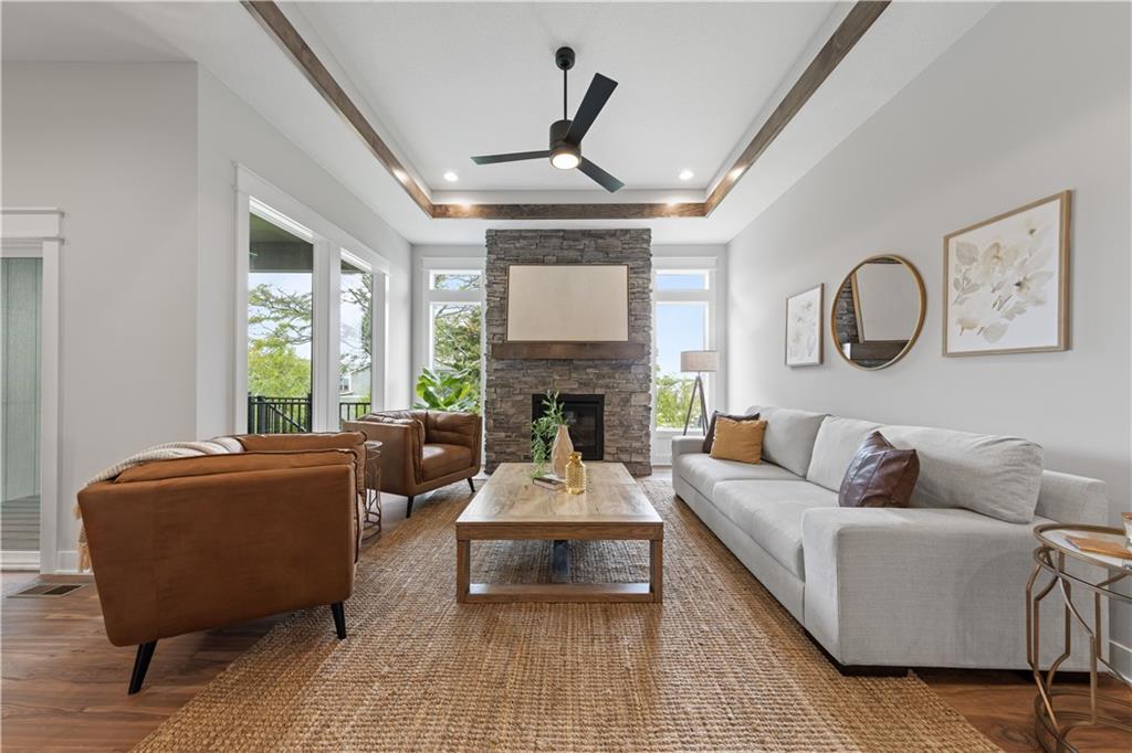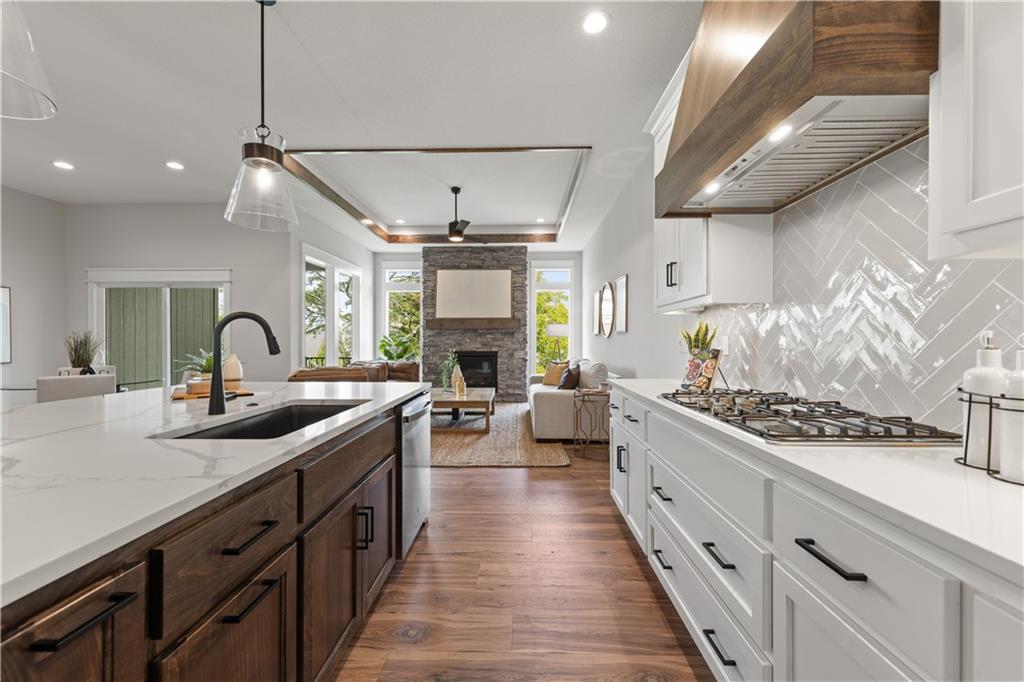 Ready for an end of June 2026 close! Presenting The Cambridge, the newest Reverse 1.5-story floor plan by award-winning builder Inspired Homes, nestled in the sought-after Pryor Ridge community. This thoughtfully crafted 4-bedroom, 3-bath residence blends upscale design with everyday comfort and functionality. A bright, open-concept layout welcomes you with a spacious entry, striking staircase, 10-foot ceilings, and expansive windows that flood the home with natural light. The gourmet kitchen is designed to impress, featuring quartz countertops, a designer tile backsplash, soft-close cabinetry, a large island, and a walk-in pantry—ideal for hosting and daily living. The great room showcases a beautiful stone fireplace and flows seamlessly to a covered patio and level backyard, perfect for enjoying outdoor spaces. Durable and stylish RevWood flooring extends throughout the main living areas. Retreat to the main-level primary suite, complete with a spa-inspired bath offering a 6-foot soaking tub, walk-in shower, dual vanities, and a walk-in closet with convenient access to the laundry room. The finished lower level expands your living space with a recreation room, two additional bedrooms, a full bath, and ample storage. Conveniently located just minutes from Downtown Lee’s Summit, as well as nearby lakes, trails, shopping, dining, and highly rated schools. Enjoy added peace of mind with new construction backed by a 2-10 Home Warranty, including 10-year structural, 2-year mechanical, and 1-year workmanship coverage. Final touches are underway—this home is nearing completion in its Quality Assurance stage. **Photos are of previous stage home. See last photos for actual home.
