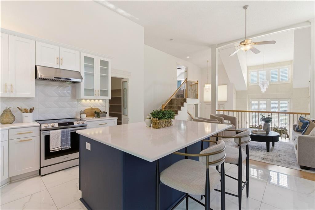 Chic, Fun, and Fully Updated! Ideally situated at the end of a quiet cul-de-sac, this unique custom-built home offers over 3,200 sq. ft. of finished living space. The interior is defined by a dramatic open floor plan featuring soaring 13-foot ceilings and high-quality finishes like Anderson windows, maple hardwood flooring, silent floor construction & plantation shutters. The heart of the home is a dazzling, remodeled kitchen complete with an expansive center island, new cabinetry, stylish backsplash, modern lighting, and premium appliances. Retreat to the totally private primary suite, which occupies its own dedicated level. This sanctuary features double-door entry, vaulted ceilings, a massive walk-in closet, and a spa-like bath with a jetted tub, sit-down vanity, and a custom shower with seating. The versatile layout includes two additional bedrooms on the main level and a lower-level bedroom with a bonus room, perfect for guests or a home office. Entertainment options abound in the huge family/media room, which comes ready for movie night with a projection screen TV. Behind the scenes, enjoy peace of mind with a BRAND-NEW COMP Roof and a high-end Trane furnace with zoned controls and a Honeywell humidifier. Step outside to a fully fenced lot, perfect for play or relaxation. This move-in-ready gem combines architectural character with top-tier mechanicals in a location that can't be beat. Located in award winning Blue Vally Schools and Close to Shops at Prairie Fire, Blue Hawk and Corbin Park and easy highway access. Come check this beautiful residence out. So much space for the $$$