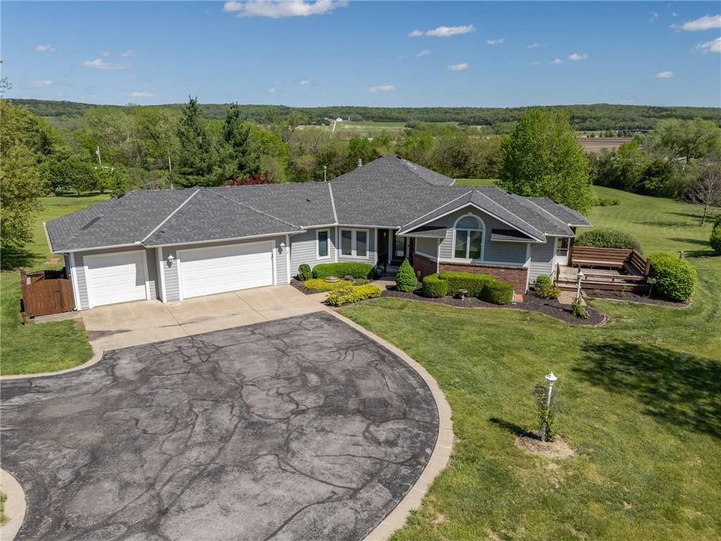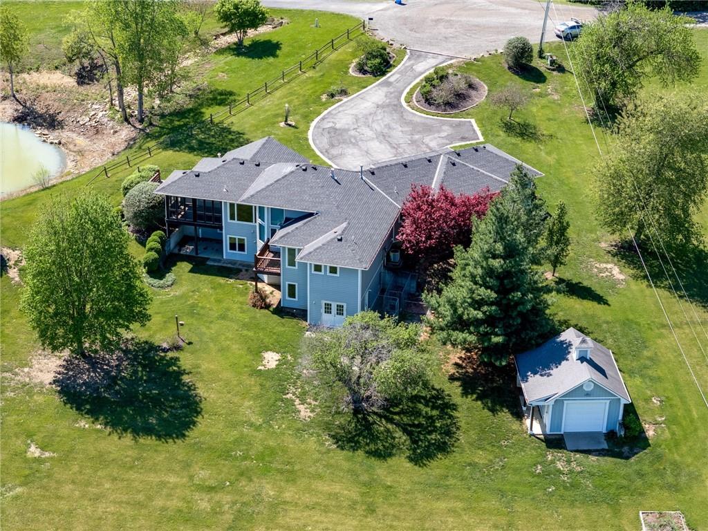 Enjoy peaceful country living just south of Lawrence on 5 scenic acres! This custom-built home showcases beautiful woodwork and quality craftsmanship throughout. The spacious, open main level is filled with natural light from large windows that capture stunning views in every direction. Relax and unwind in the inviting three-season porch, perfect for enjoying the outdoors year-round. The walkout basement features a large family room—ideal for entertaining or gathering—along with plenty of unfinished storage space for all your needs. Outside, you’ll find a pond, wide open space to roam, and a large tool shed for hobbies, equipment, or extra storage. A fantastic opportunity to own a cared for home with room to breathe, just minutes from town!
