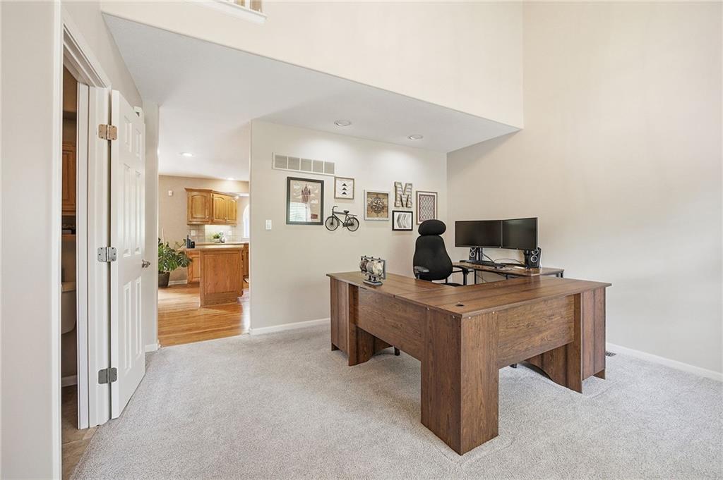Welcome to this spotless and bright 3 bedroom, 2.5 home, offering a functional layout and comfortable living spaces throughout! Enter to a versatile front room, and continue on to the open concept kitchen/eating area, featuring hardwood floors, stainless steel appliances, pantry, island and plenty of counter space. The eating area flows seamlessly into the spacious family room featuring a cozy fireplace- perfect for everyday living or entertaining! Upstairs, you'll find a private primary suite with 2 walk-in closets along with 2 additional bedrooms (more walk ins!), a full bath with double vanity, and convenient second floor laundry. Step outside to enjoy the deck overlooking a large yard with plenty of space for play, pets or gardening. The exterior was freshly painted in 2025! The unfinished basement provides endless potential for future expansion or extra storage. A convenient location near parks, golf, restaurants and shopping make this the perfect place to call home!