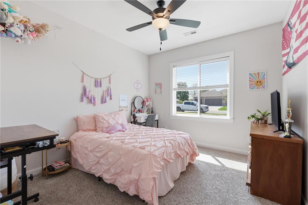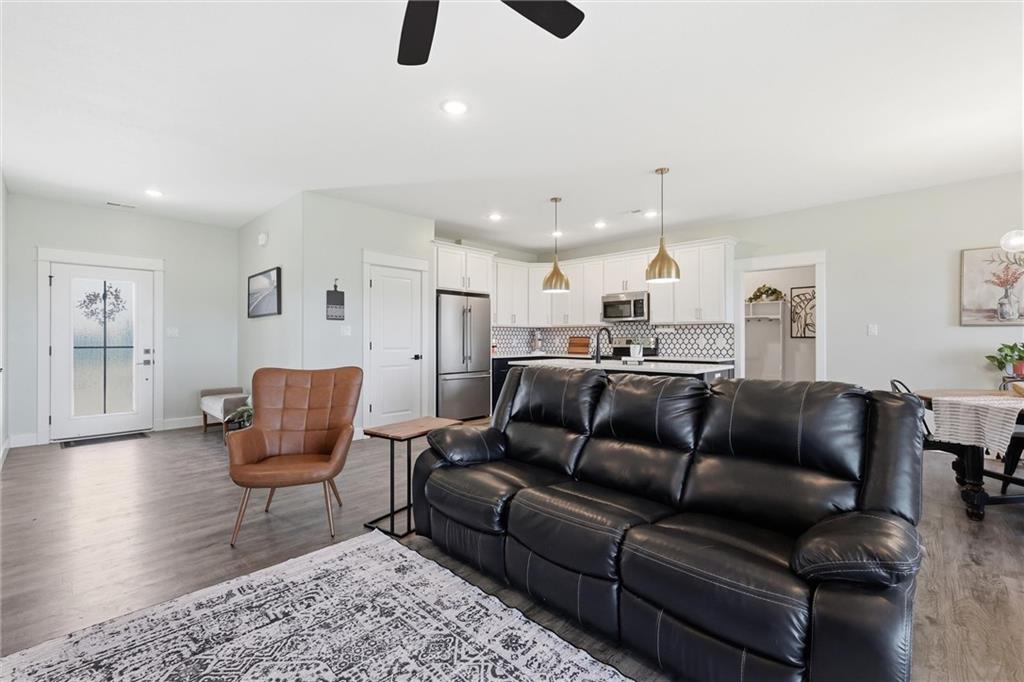 This nearly new home, built in 2023, is located in Shadow Ridge and sits directly behind Eudora Middle School. The open living space flows out to the covered back patio and fully fenced backyard. The kitchen features a large island, white quartz countertops, a walk-in pantry, and all kitchen appliances stay. The primary bedroom offers an en suite bath and a large closet, while the other two bedrooms are located on the opposite side of the home. Enjoy the benefits of a newer home with added personal touches throughout, such as fresh paint, wallpaper, and upgraded fixtures.