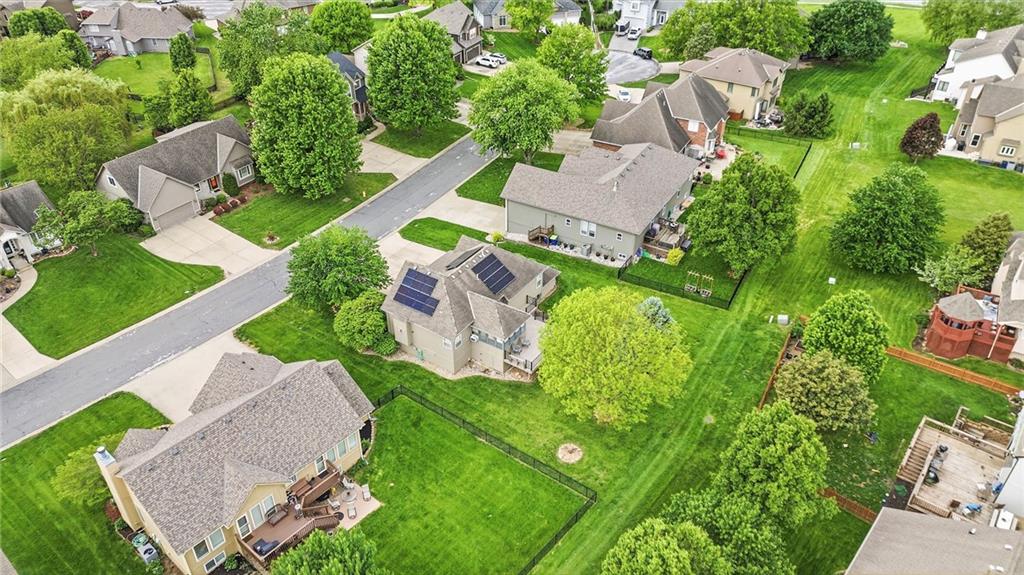 Welcome to Raintree Lake, one of Lee's Summit's most sought-after lake communities! This 4-bedroom, 3-bathroom home offers the perfect blend of comfort, functionality, and lake lifestyle living, just a short stroll from the water. The oversized 3-car garage is ideal for a workshop, hobby space, or storing all your lake-life gear. Energy-conscious buyers will love the newly installed solar panels and whole-home water softener. Enjoy the outdoors year-round from the sunroom or the deck — perfect for relaxing or entertaining. The primary suite impresses with a vaulted ceiling in the ensuite bath, double vanity, and separate tub and shower. The primary closet features custom built-in jewelry storage. Two laundry areas, one on each level, adding everyday convenience. The lower level recreation room with wet bar is a cozy gathering space for all. As a Raintree Lake homeowner, you'll have access to a 235-acre lake stocked with largemouth bass, crappie, bluegill, and channel catfish. Other available amenities include boating, nine protected swim docks, an Olympic-sized zero-entry pool, and 7.5 miles of private shoreline walking trails. The community clubhouse, activity center, and year-round calendar of neighborhood events make Raintree Lake a place where residents truly connect. Don't miss your chance to own in one of Kansas City's premier lake communities!