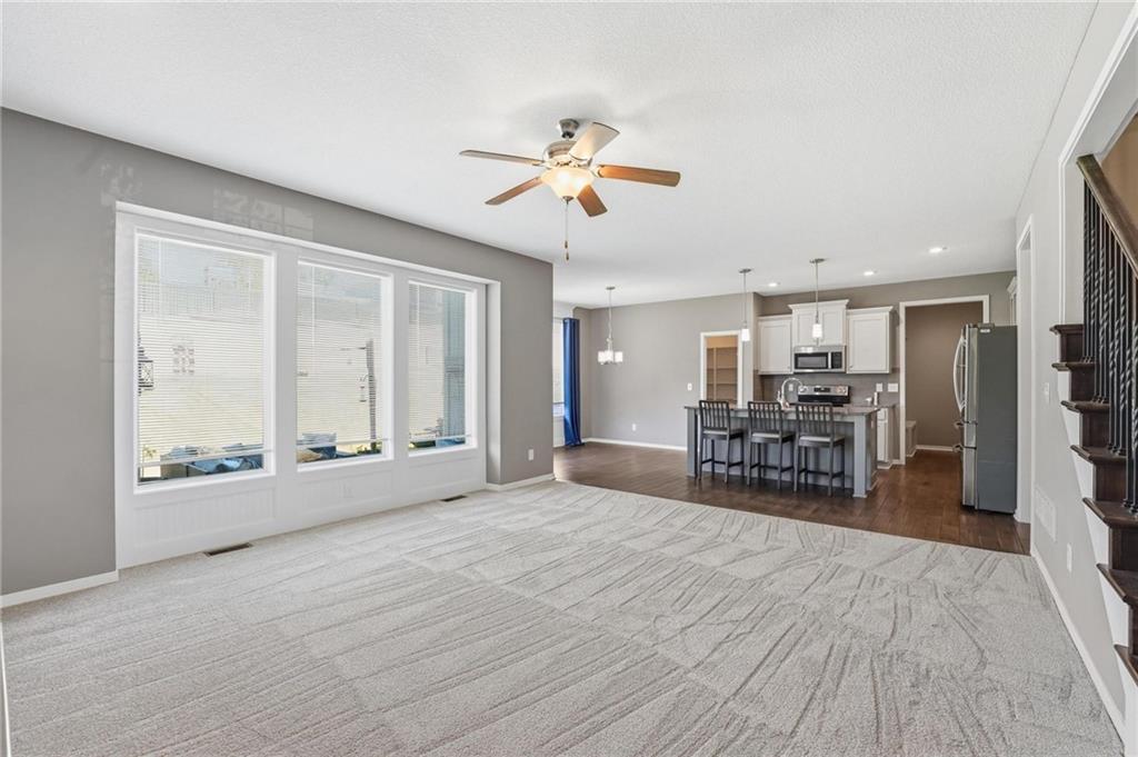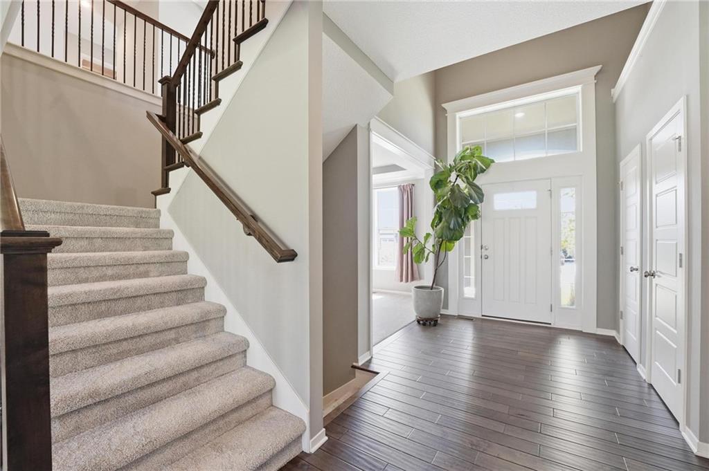 This beautifully maintained 4-bedroom, 3.1-bath home offers the perfect blend of comfort, style, and everyday functionality in a highly desirable Olathe location. From the moment you arrive, the charming front porch sets a welcoming tone, leading into a bright and airy interior with soaring ceilings and an inviting entryway. The main living area is filled with natural light and features a cozy fireplace, creating an ideal space for both relaxing and entertaining. The open-concept layout flows seamlessly into the kitchen, where granite countertops, a large island, ample cabinetry, and a new microwave make both cooking and gathering effortless. Fresh new carpet enhances the home’s clean, updated feel, while thoughtful design elements throughout provide both style and practicality. Upstairs, the spacious primary suite offers a peaceful retreat with a tray ceiling and a well-appointed en-suite bath. Additional bedrooms provide flexibility for family, guests, or home office needs. A versatile loft area with built-in shelving adds even more functional living space. Step outside to enjoy the newly landscaped yard with freshly laid sod, offering plenty of room to relax or play. The outdoor living area is perfect for entertaining, complete with a patio and outdoor TV for enjoying evenings at home. The unfinished basement presents a fantastic opportunity to customize additional living space to suit your needs. Ideally situated near shopping, dining, and everyday conveniences while still offering a quiet, neighborhood feel, this home combines location, community, and livability in one exceptional package.