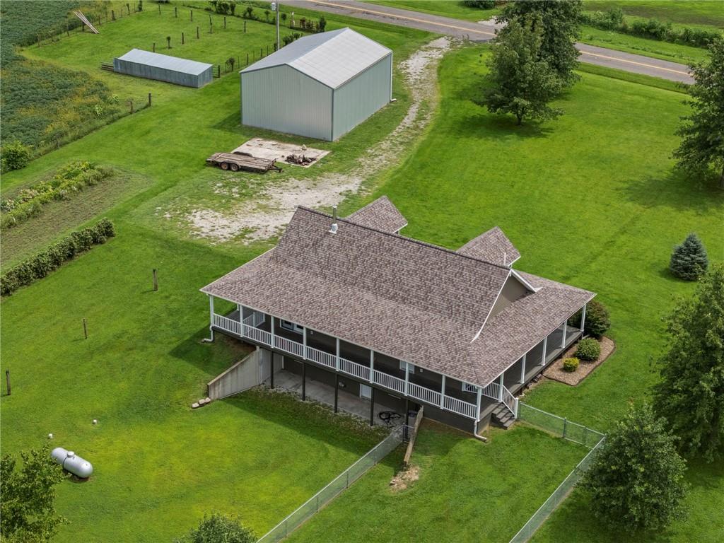 Escape to your own slice of paradise with this stunning 4-bedroom, 3-bath home nestled on 10 picturesque acres. Designed for comfort and connection with nature, this one-of-a-kind property features a spacious wrap-around deck perfect for morning coffee, sunset views, and everything in between. Step inside to find a warm and inviting living space with a breathtaking floor-to-ceiling fireplace, creating a cozy centerpiece for gatherings year-round. The open layout and expansive windows bring in natural light and offer beautiful views of your private haven. Half of the land boasts mature woods teeming with wildlife, offering peace, privacy, and exceptional hunting or hiking opportunities. The other half is productive row crop ground, giving you flexibility for farming, leasing, or expanding your homestead vision. Enjoy fresh fruit from your established fruit trees and grapevines, and discover the joy of country living with deer, turkey, and wildlife right outside your door. Whether you're looking for a family home, a weekend retreat, or a private estate, this property delivers serenity, space, and endless possibilities. Don't miss your chance to own this perfect getaway—where comfort meets nature, and every day feels like a vacation.