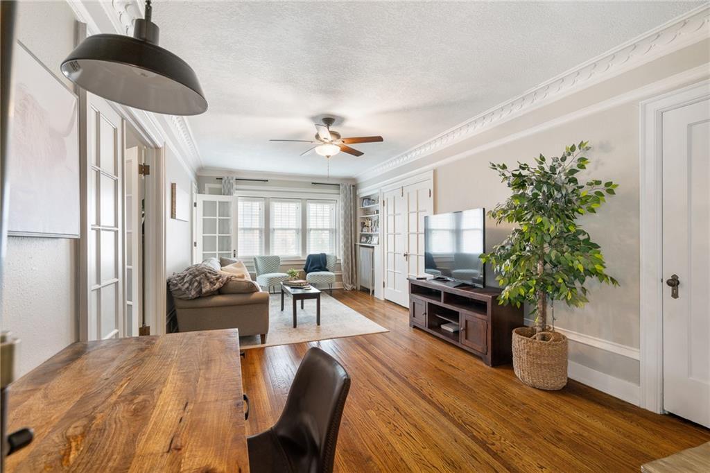 Welcome to this picture-perfect, well-maintained 1-bedroom, 1-bath condo in the historic Eugene Field building, right in the heart of the Country Club Plaza. This fully furnished unit is move-in ready, making it a perfect starter home or an ideal second residence. Enjoy the charm of the sunroom just off the bedroom-perfect for morning coffee, a home office, or a cozy reading nook. The layout is both comfortable and functional, with stylish furnishings that make settling in effortless. Located in one of the cities most walkable areas, you'll have shops, dining, and streetcar access just steps from your door. Whether you're looking for convenience, character, or a low-maintenance lifestyle, this condo checks all the boxes. Don't miss the opportunity to own a piece of Plaza living!