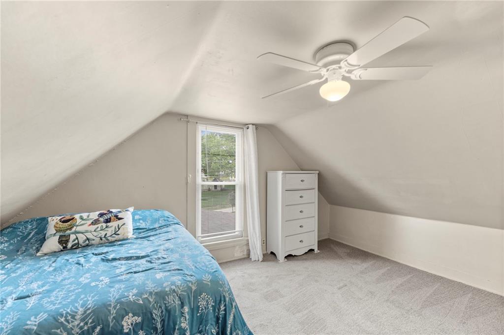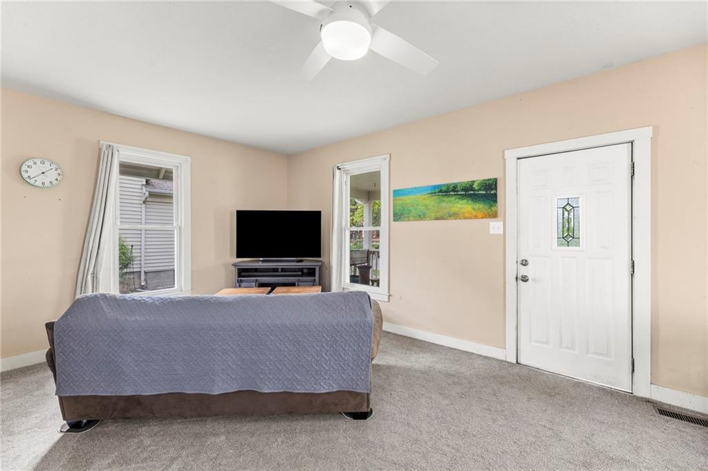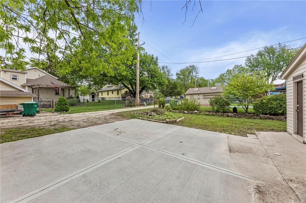 Nestled in a prime location just a short stroll from the charm of the historic Paola square, this adorable two-bedroom, two-bathroom home offers a perfect blend of modern convenience and classic appeal. The main level welcomes you with an expansive family room that flows effortlessly into an open concept kitchen and dining area with loads of cabinets and all appliances staying, creating an ideal layout for both daily living and effortless entertaining. Main level bathroom features a huge, tiled shower. Upstairs, you will find two generously sized bedrooms and a second full bathroom, providing a private and comfortable retreat. Car enthusiasts or those seeking extra storage will appreciate the wonderful, newer two-car attached garage that adds significant value to the property. The home's exterior has been meticulously maintained, featuring a comprehensive refresh in 2020 that included scraping and repainting the siding along with the installation of new gutters, newer windows 2022 and central heat and air. Beyond the walls, a lovely yard awaits, offering the perfect backdrop for summer barbecues and outdoor relaxation. This move-in-ready gem combines a fantastic layout with a sought-after neighborhood setting; don't miss your chance to own a piece of Paola history, as a home this well-cared-for truly won't last long on the market.