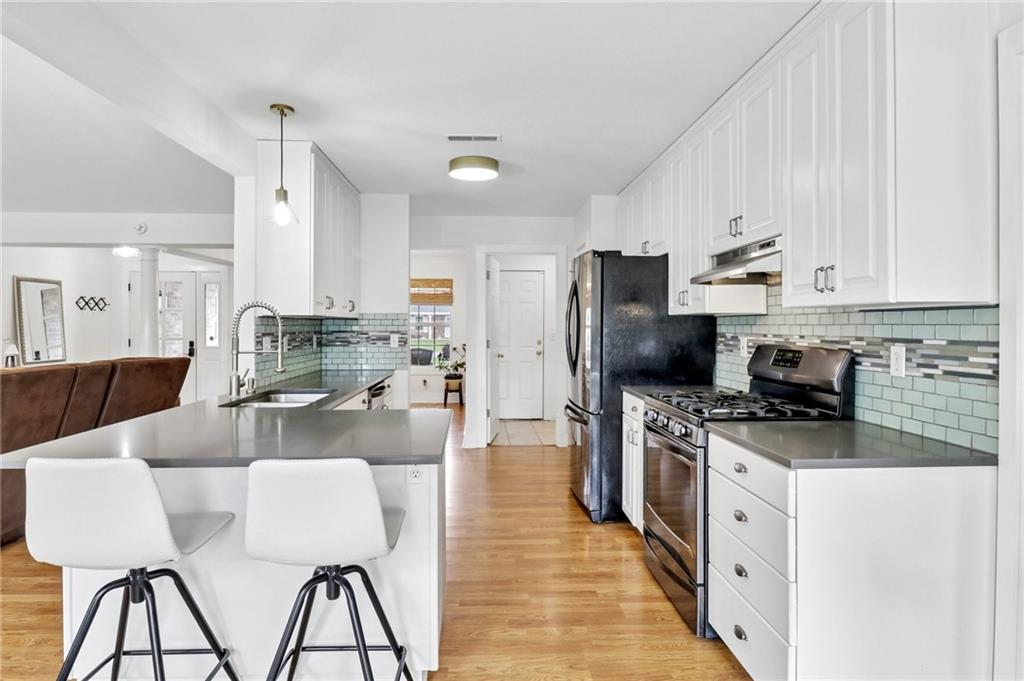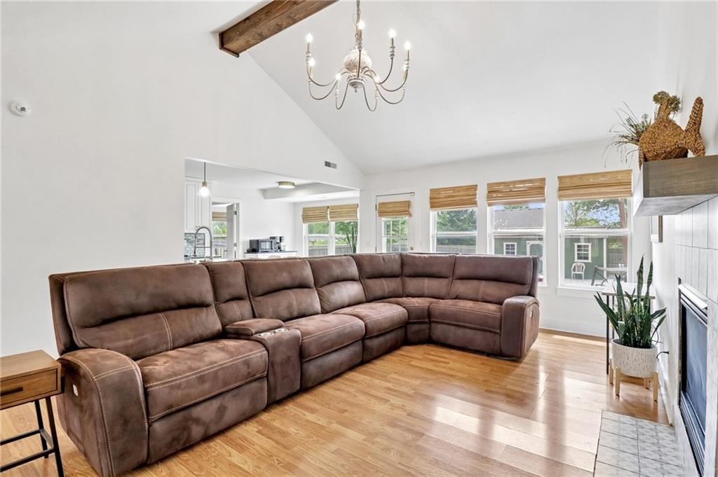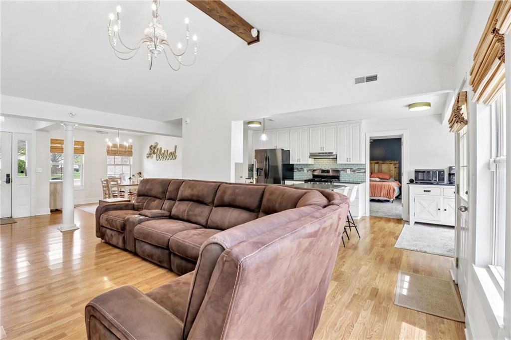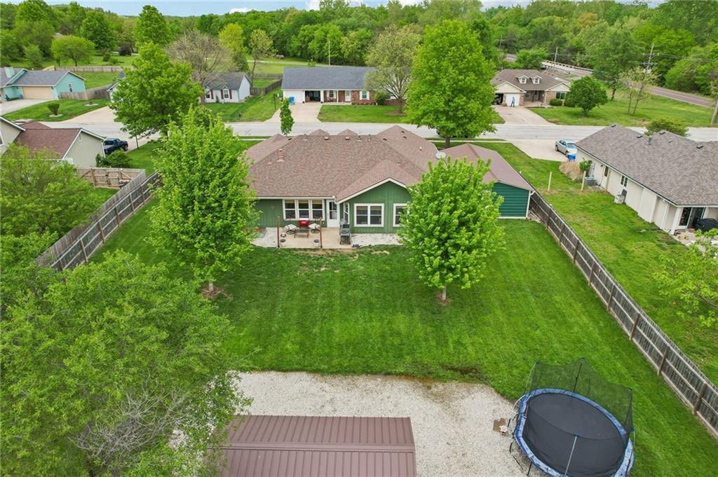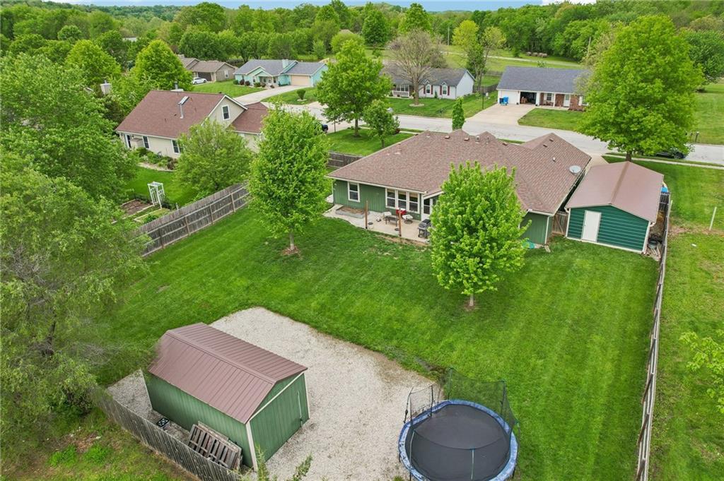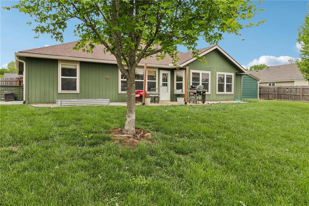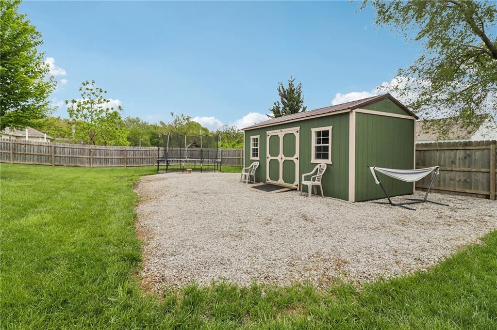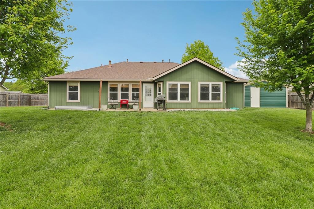 An inviting front patio welcomes you to this stunning 4-bedroom ranch with zero steps, offering one-level living throughout. Inside, you’ll find a spacious and comfortable layout designed with both function and flow in mind. The main living area features a large living room anchored by a fireplace and enhanced with built-in shelving. From here, the home transitions seamlessly into a formal dining room and an eat-in kitchen. The oversized primary suite offers a true retreat with a tub, stall shower, and a generous walk-in closet. Step outside to a fully fenced yard that provides privacy and plenty of room to enjoy the outdoors. A standout bonus includes two insulated outbuildings—16x35(concrete driveway w/ garage door) and 10x20—both with electricity, offering endless possibilities for a workshop, storage, hobbies, or whatever fits your needs.