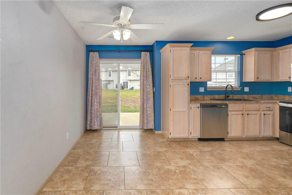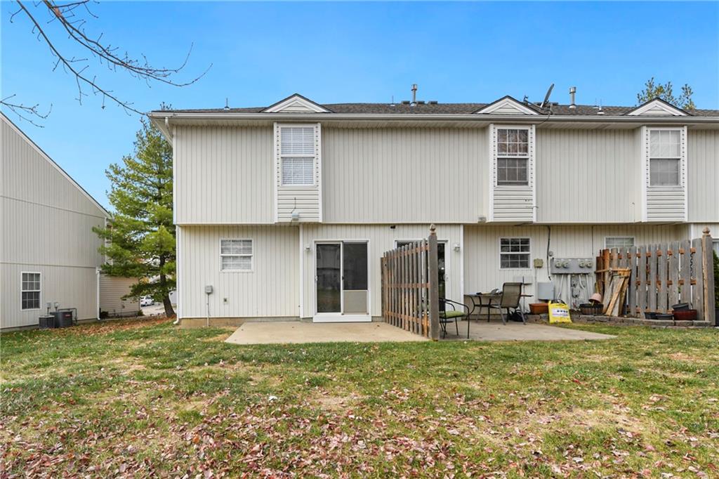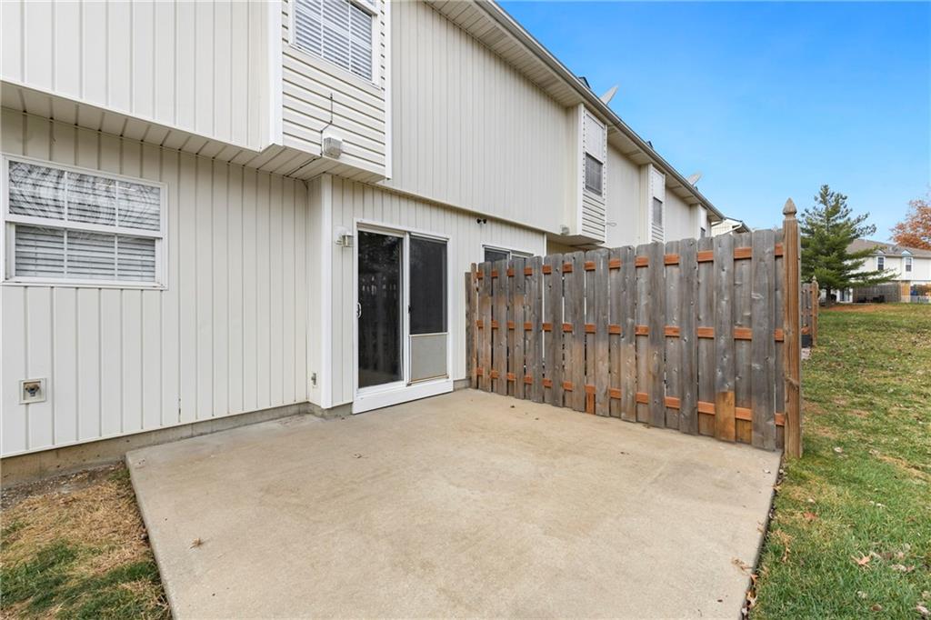 Now is your chance....don't miss it! Highly sought after end unit that backs to greenspace with trees. MOVE IN READY!!! Cleaned from top to bottom (even power washed the patio) with a splash of color (various ocean/sky blues and relaxing grays). NEW - kitchen SS appliances (stove, microwave, & dishwasher), carpet throughout the whole unit, kitchen faucet, primary suite - light fixtures, sink faucet, shower & bathtub faucets, toilet flange ring & wax ring), water heater (next week), window & storm door screens (4), & 2 sets of blinds. Seller replaced A/C unit the summer of 2023 to a Trane XR (upgraded). Other updates include - kitchen ceiling light fixture, taller toilet in primary bath, & new fan in living room. BIG BONUS - Garage features an attic pull-down with stairs for additional storage. Front faces West (sun to clear driveway). The patio is on the East (shade for the evening). Washer & dryer stay with the unit. Amenities include lawn care, snow removal, community pool, exterior maintenance. Neighborhood is owner occupied only, no rentals allowed. Home is close to shopping and restaurants, with quick highway access, and located within award winning Lee's Summit School District. Don’t miss out on this fantastic opportunity to own a move-in ready home with thoughtful updates in a prime location.