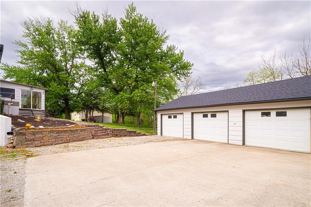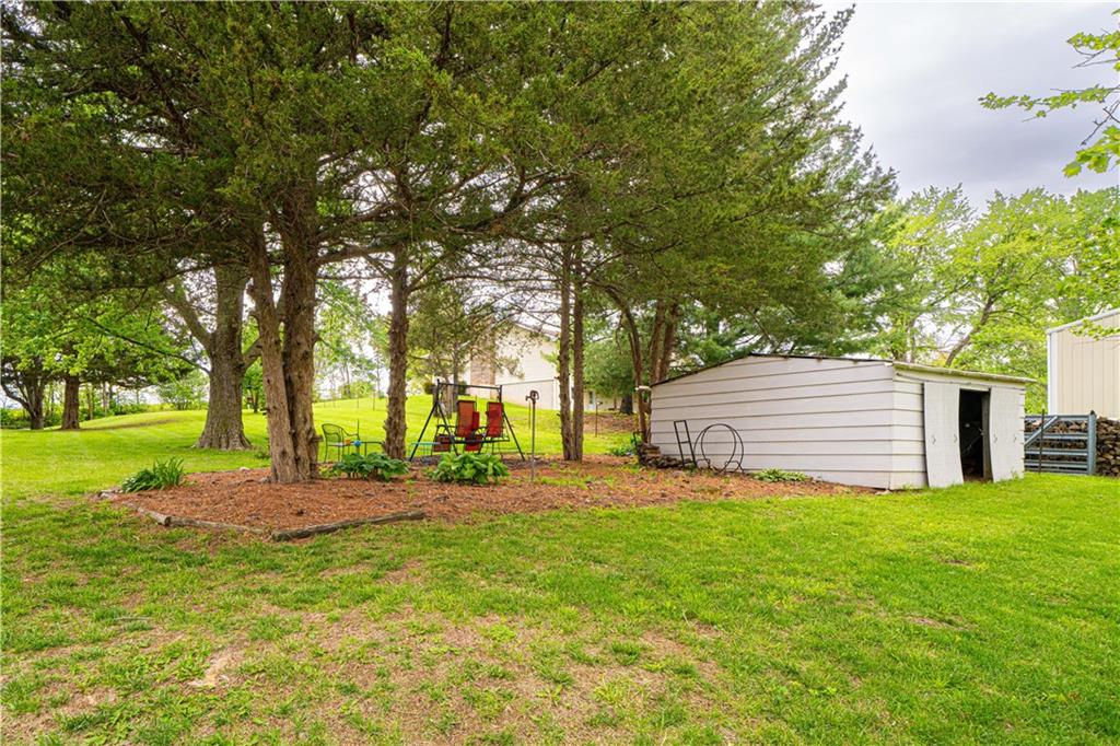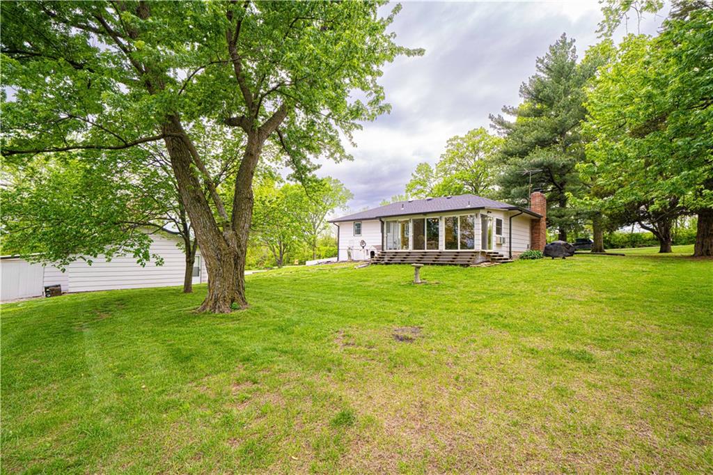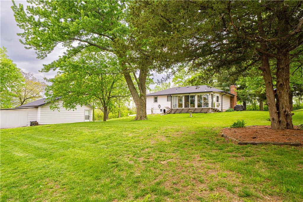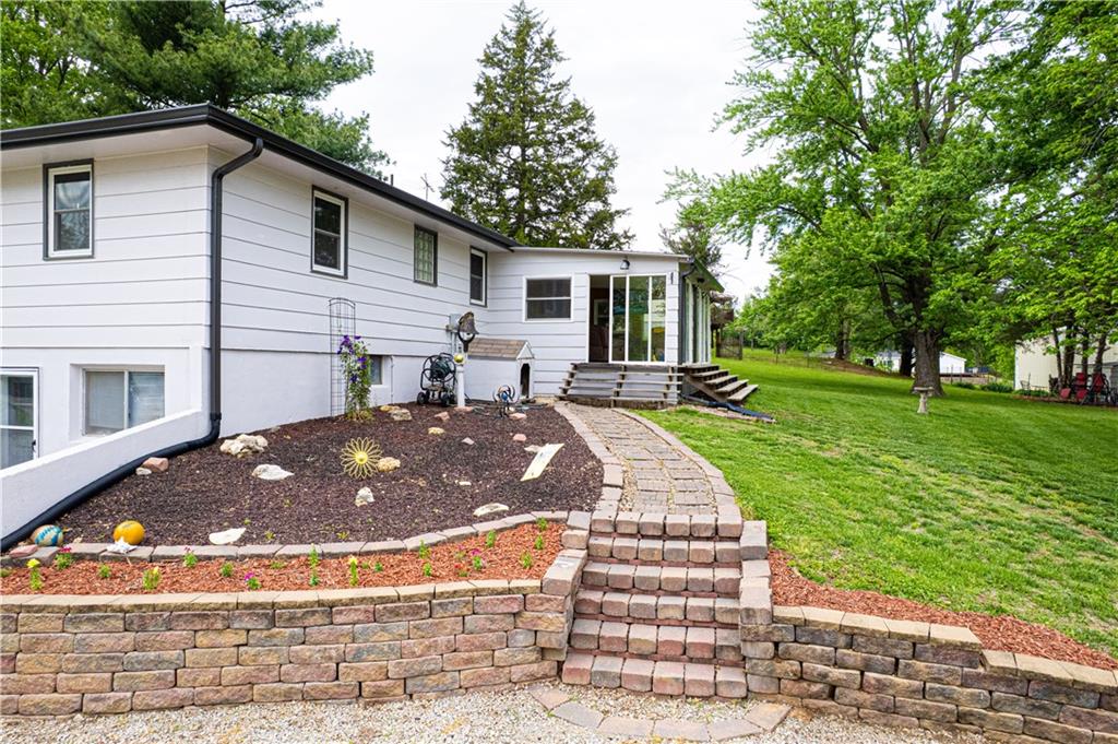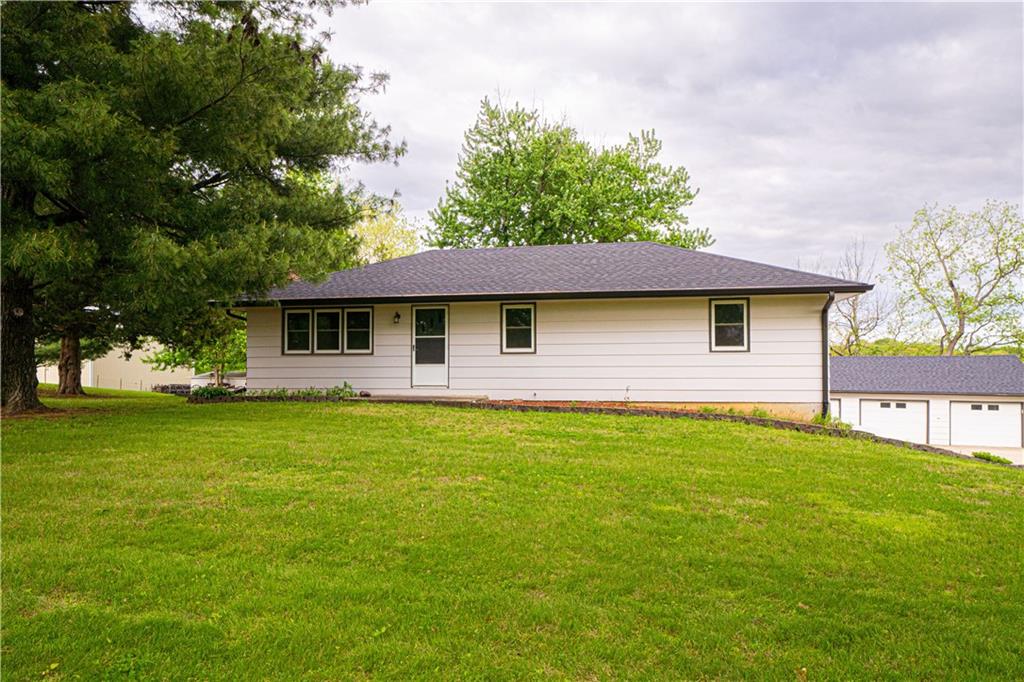 Spacious and well-maintained 4-bedroom, 2-bath home on 1.5 acres along State Rt DD in Savannah, MO, offering 2,536 total finished square feet and a full finished walk-out basement. This property has seen extensive updates, including new windows, HVAC system with humidifier, hot water heater, and added attic insulation in 2021, plus a brand-new roof and gutters in 2024. Septic system (tank and laterals) was replaced in 2017. The main level features three bedrooms with hardwood floors, ceiling fans, and soft pull-down blinds. The updated kitchen offers hickory cabinets with soft-close drawers, laminate flooring, modern lighting, and includes GE stove/oven, microwave, Frigidaire refrigerator, and Maytag dishwasher. The living room showcases a wood-burning fireplace, built-in grandfather clock, and fresh paint. The finished basement adds a fourth bedroom, second full bath with recent updates, new laminate flooring, fresh paint, additional living space, and ample storage. Wall-mounted TVs in the basement living area and bedroom stay. Exterior highlights include a 3-car detached garage with electricity and automatic doors (roof replaced in 2020), attached lean-to for extra storage, a 1-car attached garage, and plenty of parking. A rare combination of space, updates, and functionality—this home is truly move-in ready.