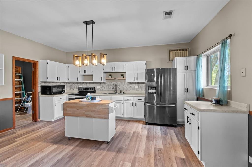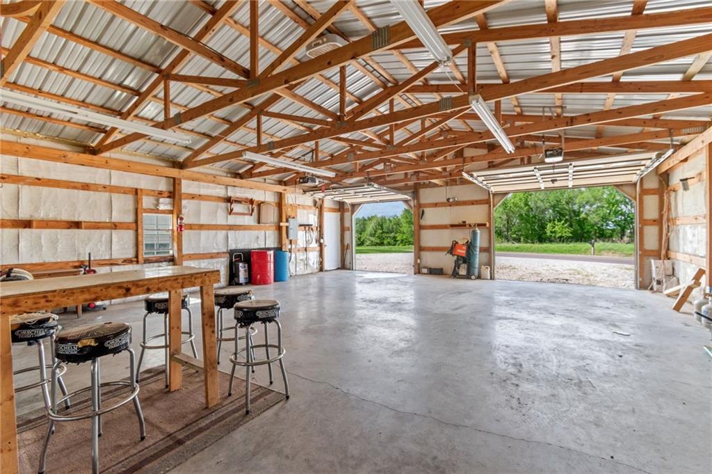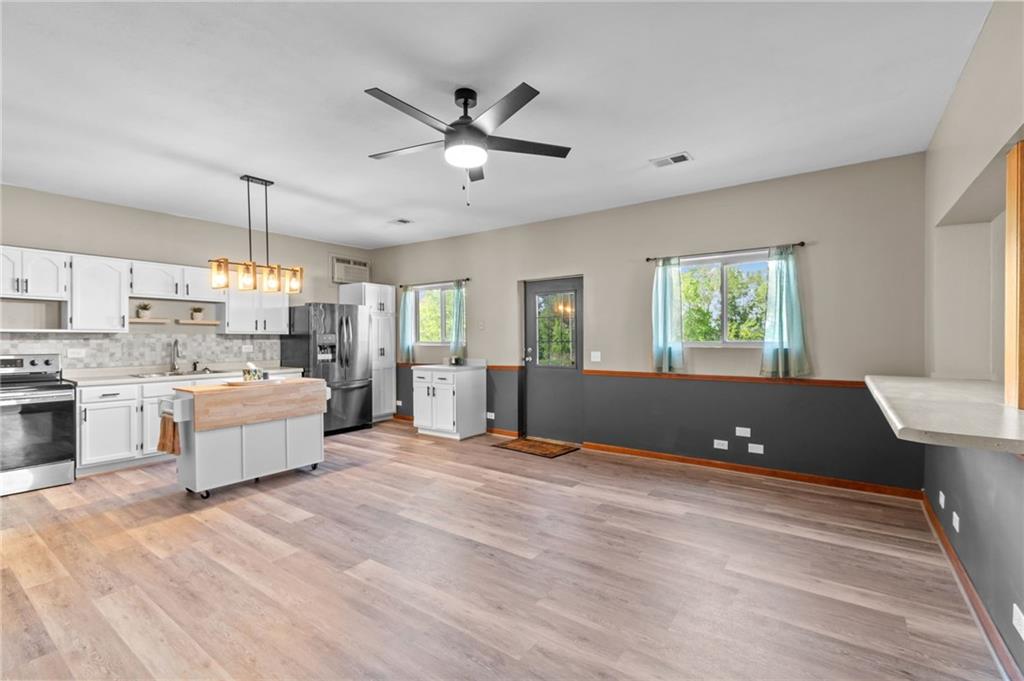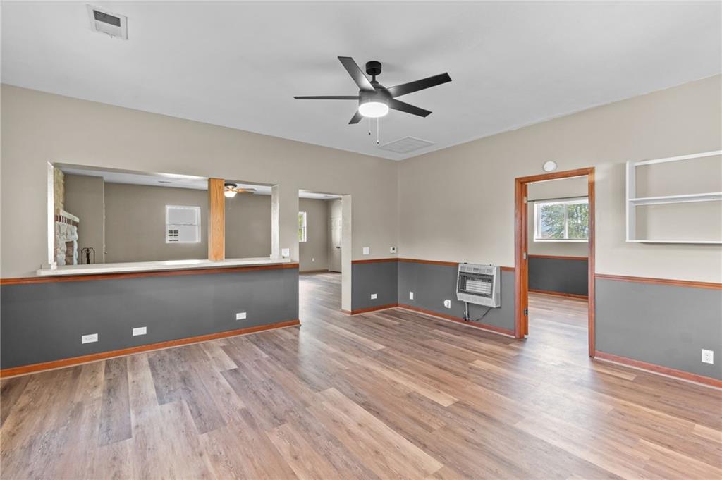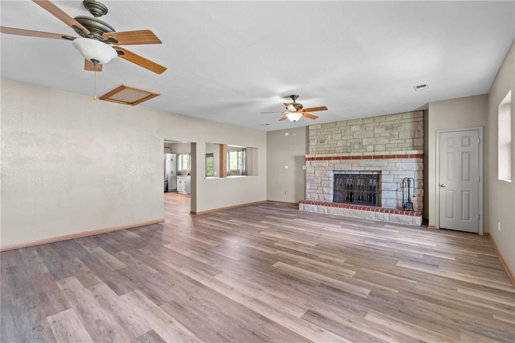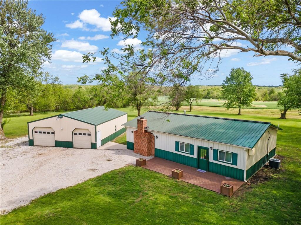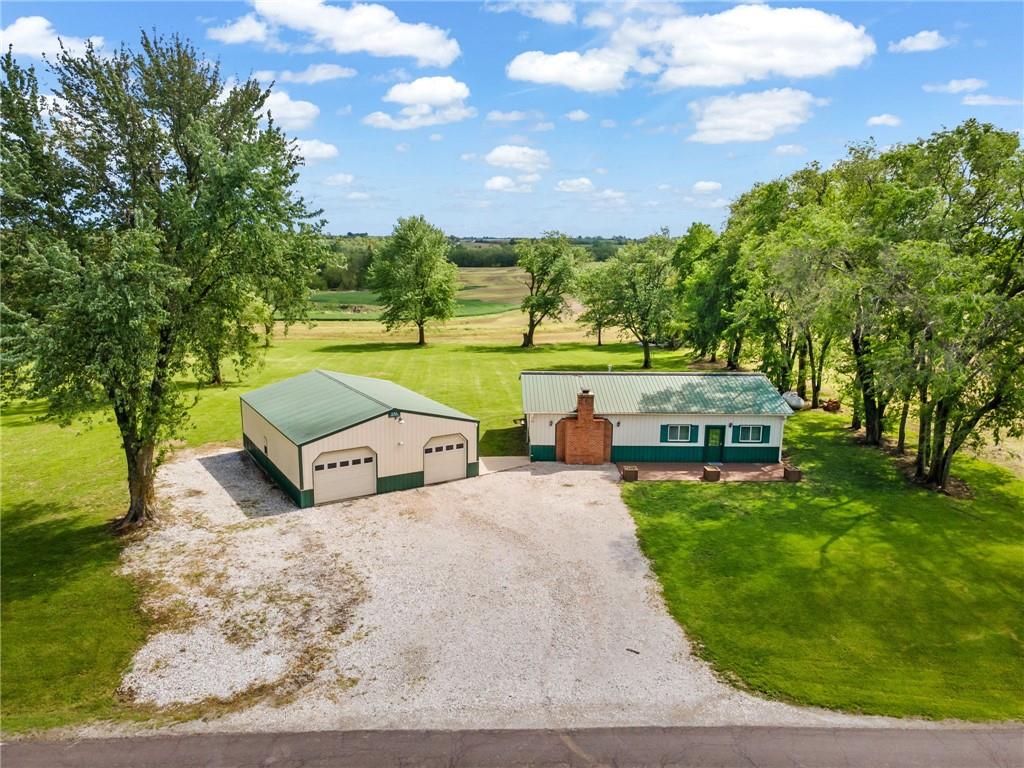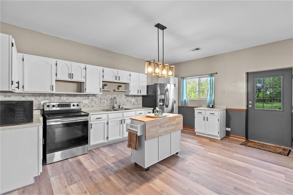 Perfect setting on 4 acres M/L with scenic views and privacy! This 1,350 sq ft home offers an open floor plan and a spacious 16’ x 30’ family room with potential to convert into additional bedrooms. Features include a stone wood-burning fireplace, updated kitchen with new countertops, backsplash, and included appliances, plus all new flooring throughout and a fully renovated bathroom. New septic system already in place for peace of mind. 30’ x 40’ detached garage provides excellent storage or workshop space. Move-in ready with room to grow—rare rural find!