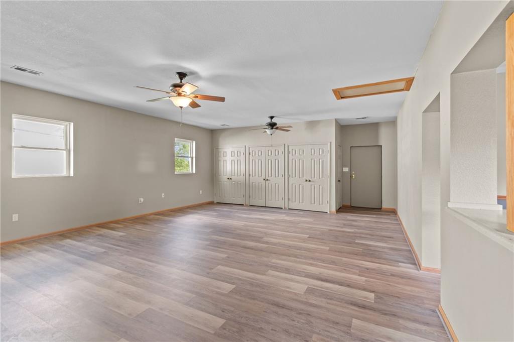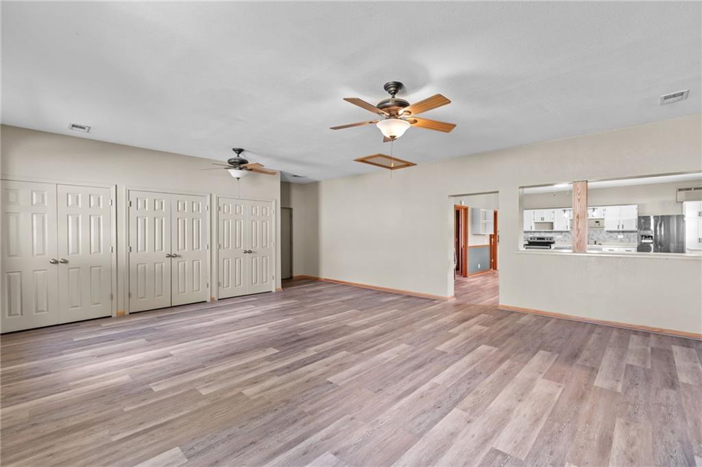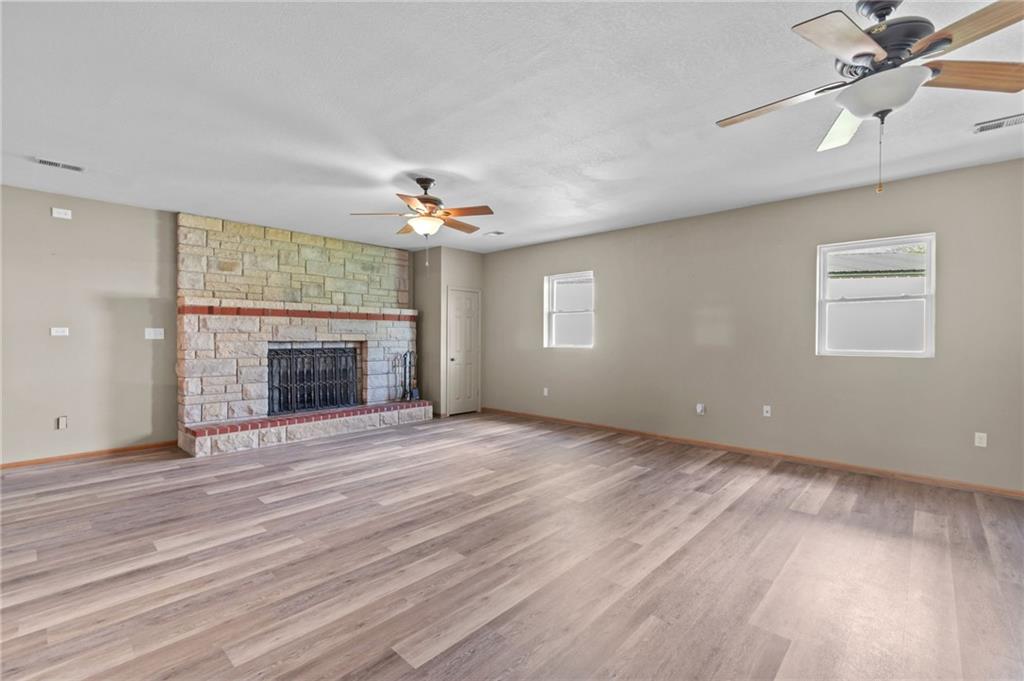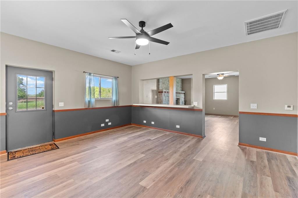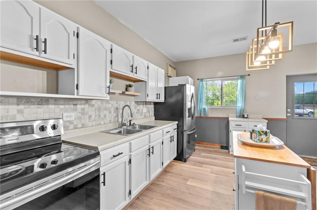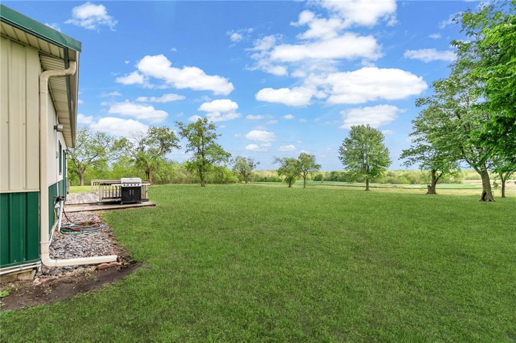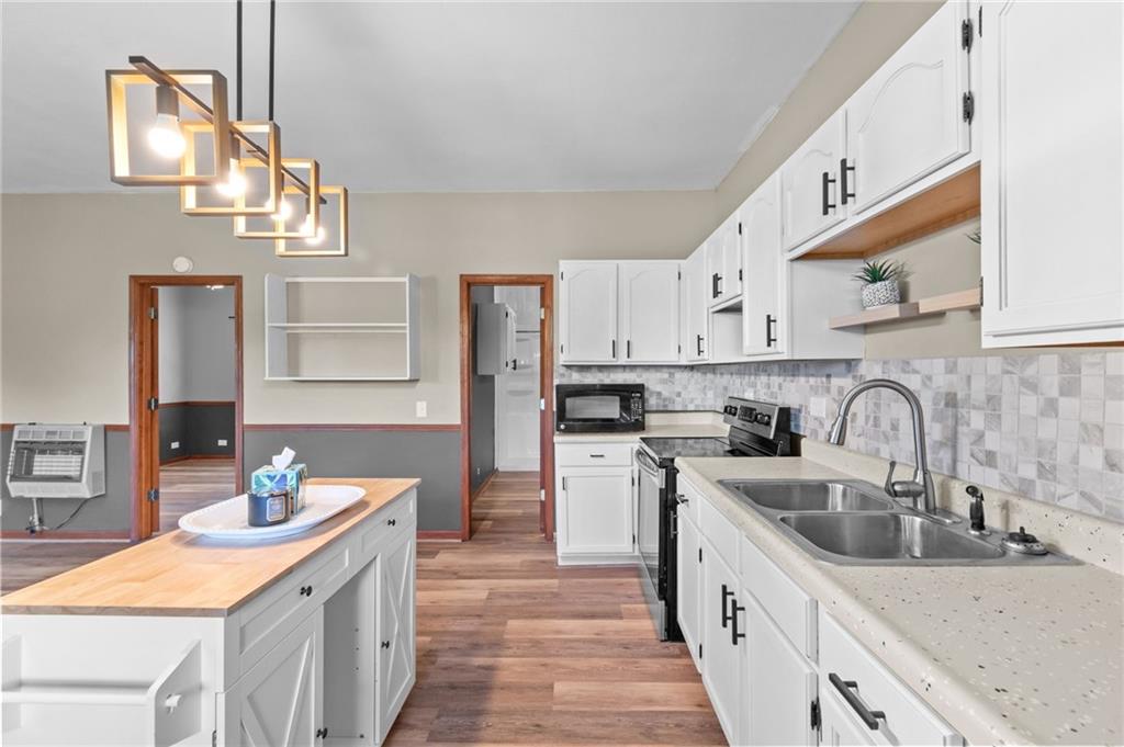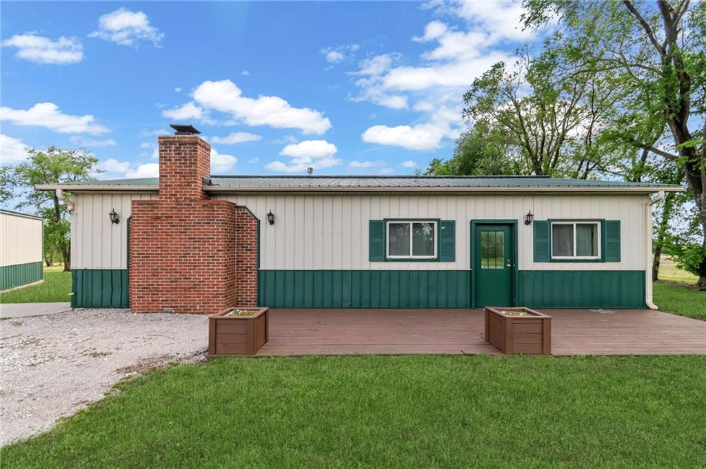 Perfect setting on 4 acres M/L with scenic views and privacy! This 1,350 sq ft home offers an open floor plan and a spacious 16’ x 30’ family room with potential to convert into additional bedrooms. Features include a stone wood-burning fireplace, updated kitchen with new countertops, backsplash, and included appliances, plus all new flooring throughout and a fully renovated bathroom. New septic system already in place for peace of mind. 30’ x 40’ detached garage provides excellent storage or workshop space. Move-in ready with room to grow—rare rural find!