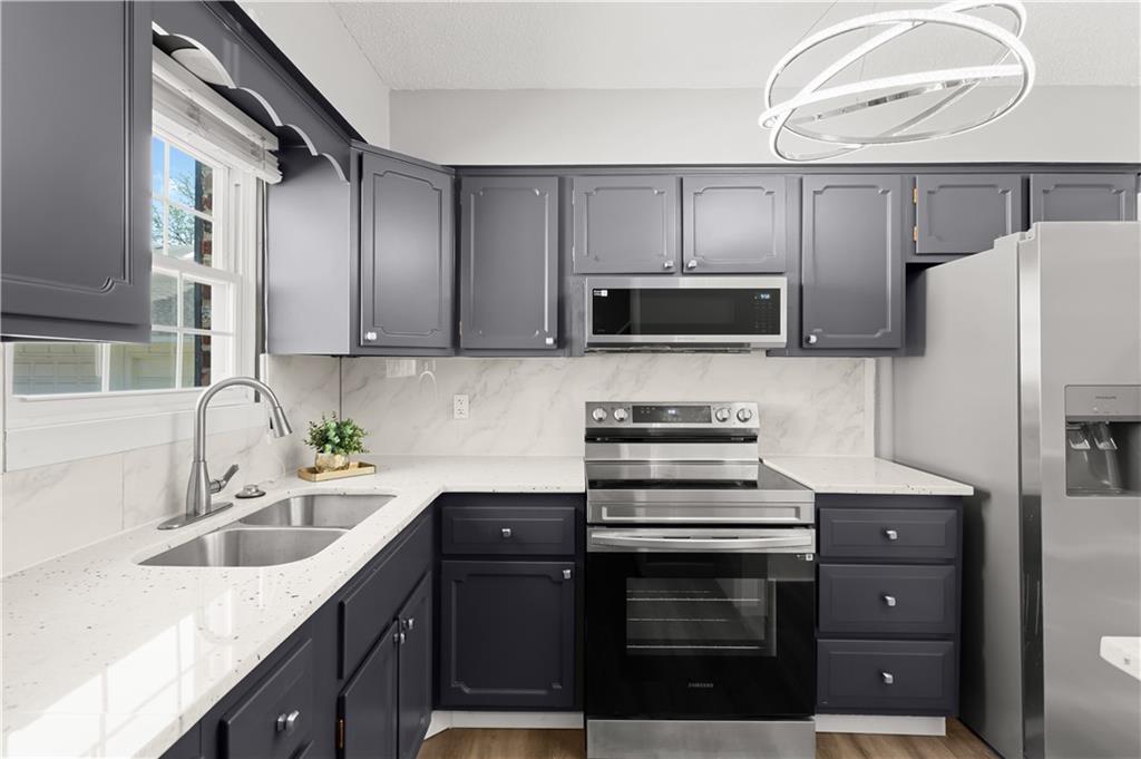 Rare opportunity to own a light-filled brick end-unit townhome with a completely updated interior. This coveted end unit offers extra windows and abundant natural light throughout. This home features two oversized bedrooms upstairs with a beautifully renovated bathroom, while the finished basement provides flexible space perfect for a family room, home office, or workout area. Step outside to your private fenced patio, ideal for relaxing evenings or entertaining guests. All appliances, including washer and dryer, stay, making this truly move-in ready. A stylish, low-maintenance home with the space and the updates you're are looking for. NO sign in the yard! HOA provides snow removal, street maintenance, lawn maintenance, recycling, and trash. Amenities include clubhouse, gym, party room, tennis court, basketball court, play area, and two pools. Greenbrier HOA requires buyers to be owner-occupied and to provide proof of homeowners insurance.
