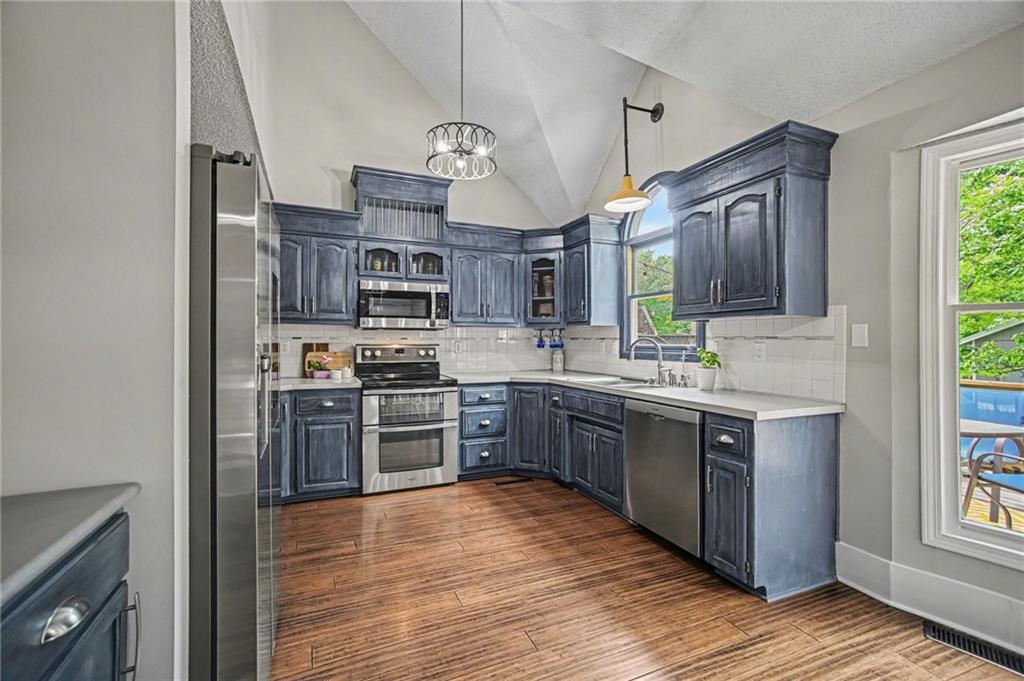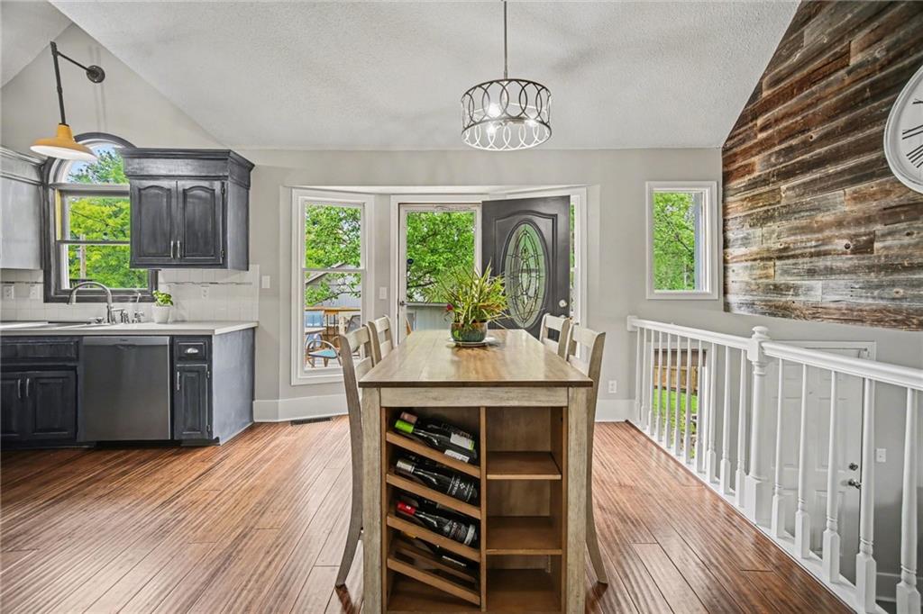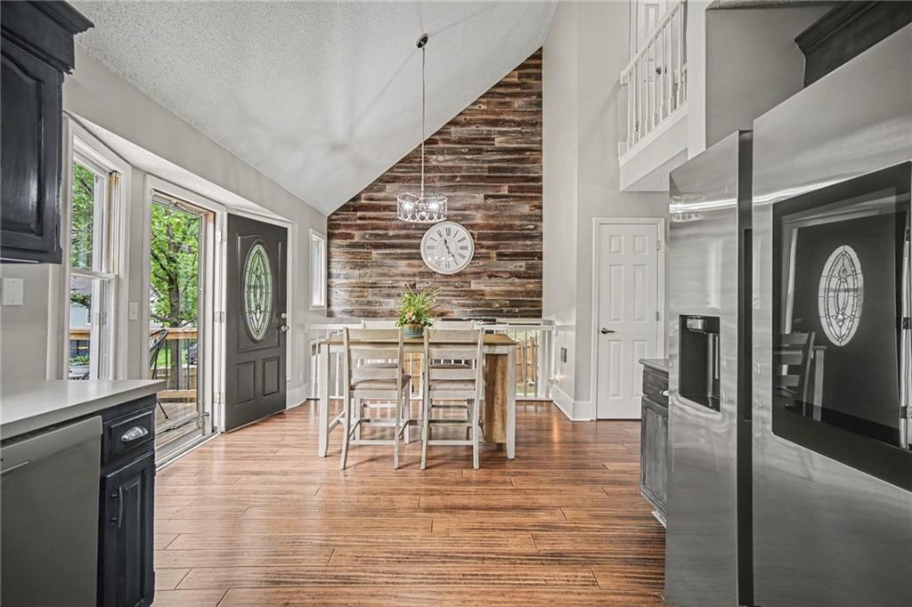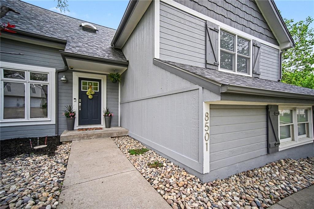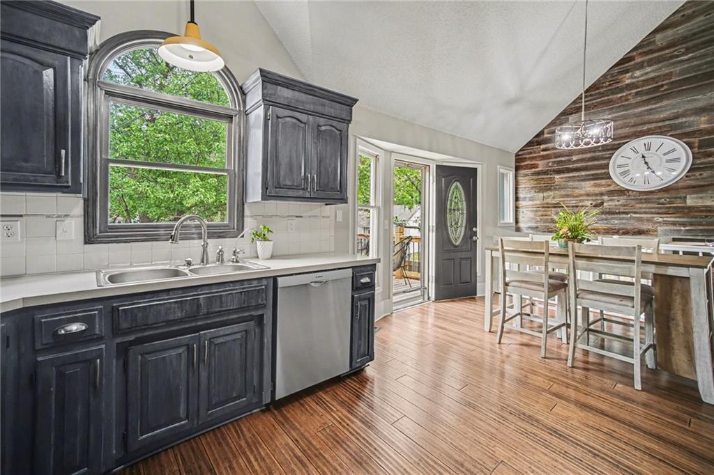 Welcome to this thoughtfully designed home with vaulted ceilings, fresh updates, and an open, inviting layout that make this home a standout from the moment you walk in!! Thoughtfully designed and perfect for everyday living and effortless entertaining! The spacious eat-in kitchen showcases vaulted ceilings, a stylish wood accent wall, abundant cabinetry and counter space, a pantry, and stainless steel appliances! Step directly from the kitchen onto the expansive 20x12 deck, complete with stairs leading to a treed, privacy-fenced backyard with a convenient storage shed. The front room is currently used as a formal dining space but offers flexibility as a formal living area or home office. The lower-level family room features a stunning fireplace and walkout access to the backyard, creating a warm and functional gathering space. The grand primary suite impresses with double-door entry, a walk-in closet, and a spa-like en suite bath with vaulted ceilings, double vanity, whirlpool tub, and a separate shower. A generously sized second bedroom includes its own walk-in closet, while the third bedroom is privately situated on the upper level. The sub-basement offers additional flexible space ideal for a gym, office, rec room, or storage. Situated on a corner lot with fresh landscaping, an updated exterior and a side-entry garage that offers tons of built-ins for additional storage. Located in the highly desirable Park Hill School District and just minutes from Zona Rosa, KCI Airport, highways, shopping, restaurants and parks—this home truly has it all!!