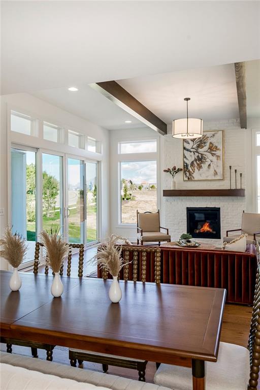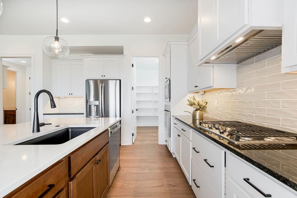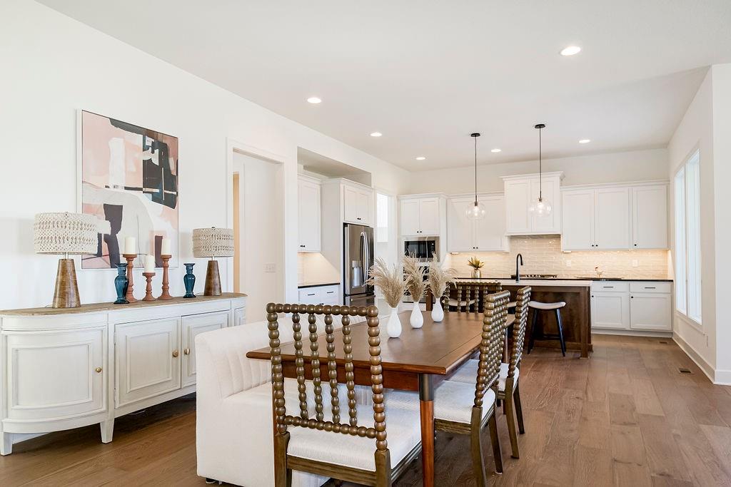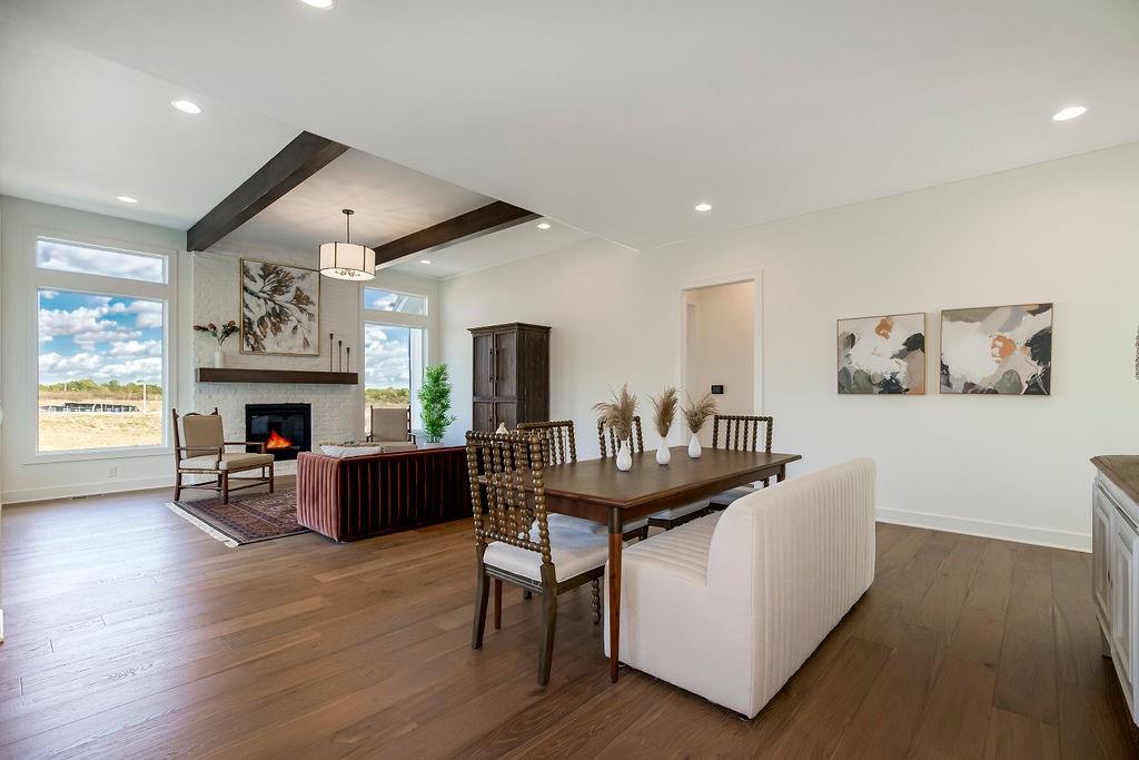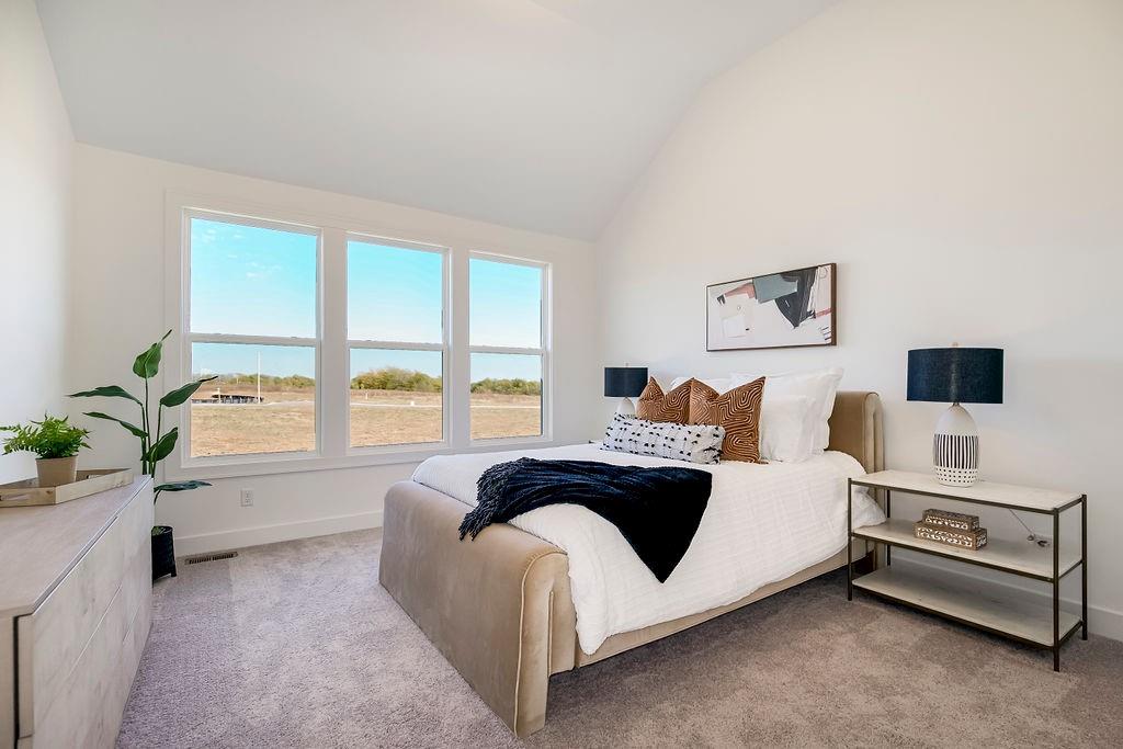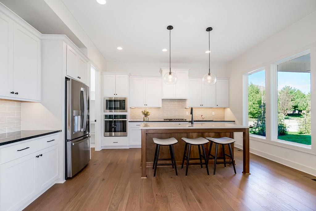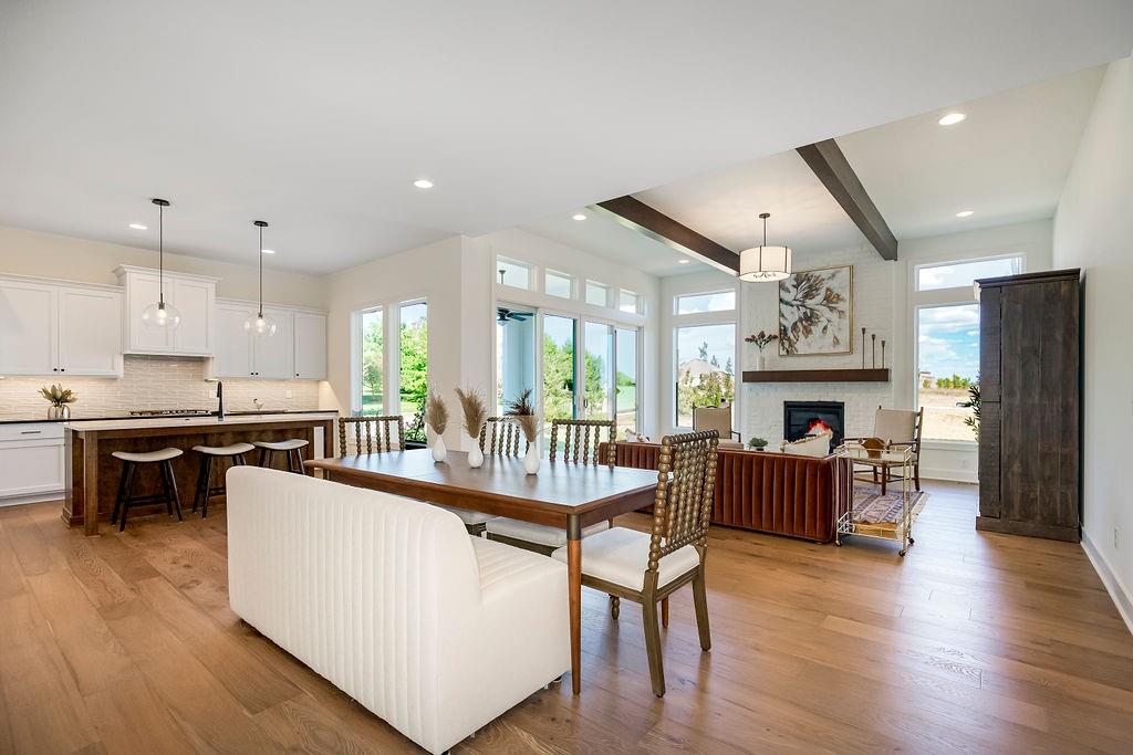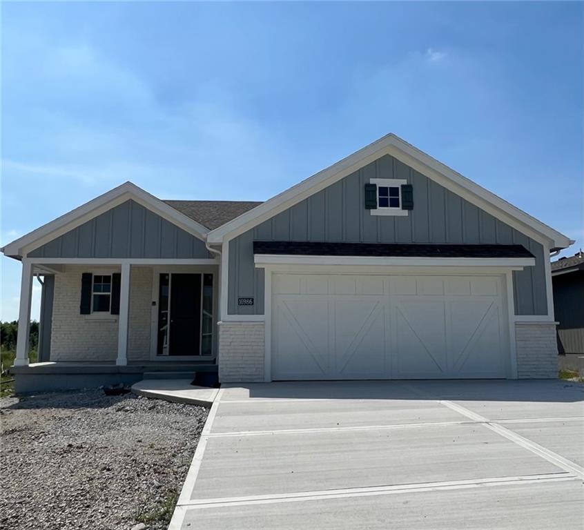 The Tahoe Plan, Elevation 2, by Rodrock Homes, in Stonebridge Villas! Enjoy a covered patio offering sunset views! Quick access to I-35 and US-169 Highways. Modern 3-bed, 2.5-bath. Open-concept main level connects kitchen, dining, and great room with vaulted ceiling and beams. Kitchen features quartz countertops, island, walk-in pantry, subway backsplash, and stainless appliances. Main-level primary suite includes zero-entry shower with bench, dual vanities, and large walk-in closet. Pocket office, laundry with sink, and drop zone add daily function. Lower level offers recreation room with wet bar, two bedrooms, full bath, and storage. Two-car garage. HOA amenities include snow removal and lawn care, pools, clubhouse, tennis, and trails. 1.5 mi to Price Chopper, 2 mi to Hy-Vee and Heritage Park, 5 mi to Bluhawk Center and KU Hospital, 4 mi to Overland Park Arboretum. 0.3 mi Prairie Creek Elementary School.