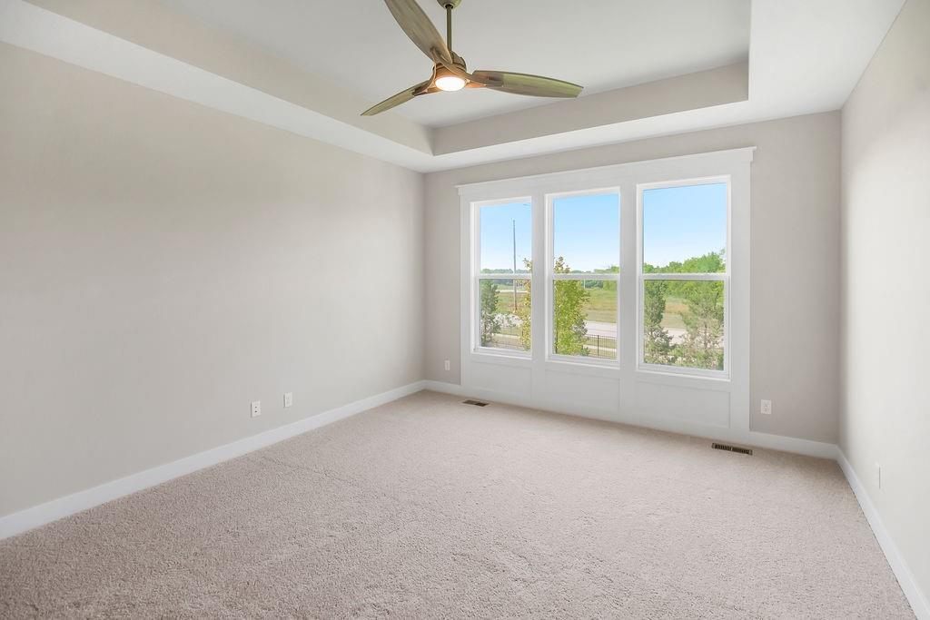 Move-in ready, the Sonoma by Rodrock Homes is a reverse-style floor plan featuring a main-level primary suite and an open Great Room with a vaulted ceiling and a wall of windows across the back, filling the space with natural sunlight. The chef’s kitchen offers a large island, walk-in pantry, and convenient drop zone off the garage. A guest bedroom with a private bath is located just behind the kitchen. The primary suite features a vaulted ceiling, spa-like bathroom with dual vanities, walk-in shower, and a huge closet with direct access to the laundry room. Enjoy outdoor living with a covered deck off the dining area, perfect for entertaining or relaxing. Residents of Stonebridge Trails have access to four zero-entry pools, two clubhouses with fitness facilities, sport courts, playgrounds, and walking trails. The home is approximately 0.3 mi from Heritage Park, a 1,234-acre recreational hub with a lake, dog park, athletic fields, disc golf course, softball, football, and soccer fields, plus an 18-hole golf course with driving range. Nearby schools include Prairie Creek Elementary (~0.6 mi), Woodland Spring Middle (~1.0 mi), and Spring Hill High (~5.5 mi). Daily conveniences are close by, including Natural Grocers (~4.2 mi), Price Chopper (~4.5 mi), and local coffee spots (~1–1.2 mi). Taxes, square footage, and room dimensions are estimated – Buyer or Buyer Agent to verify.