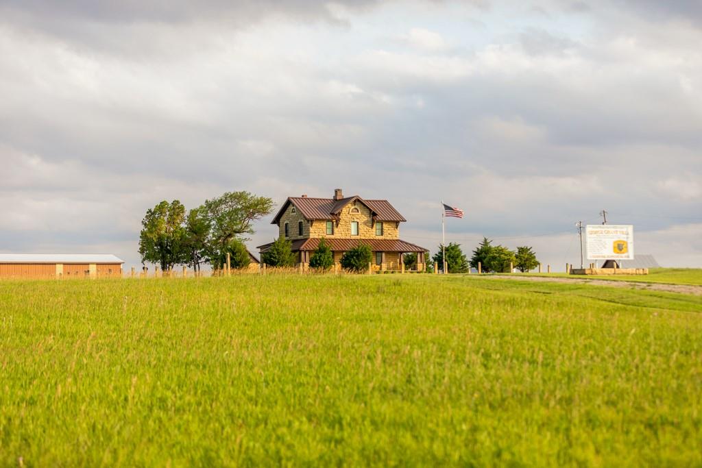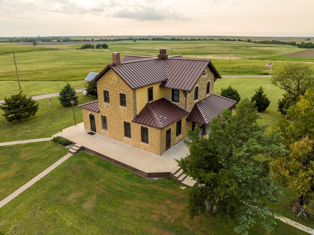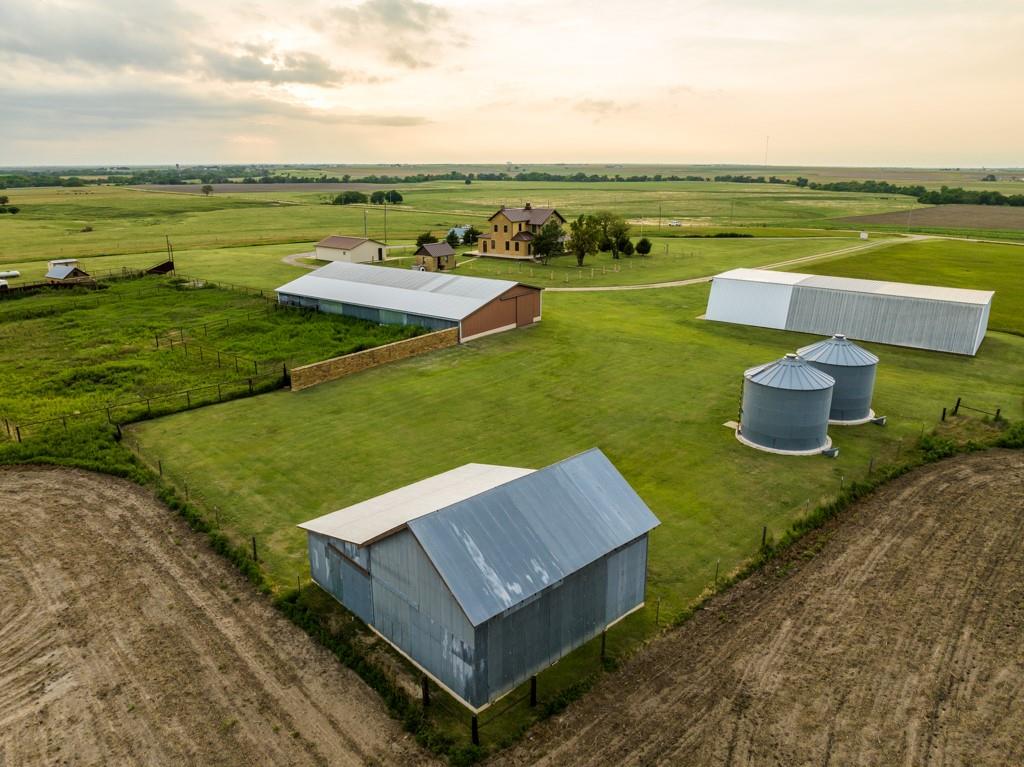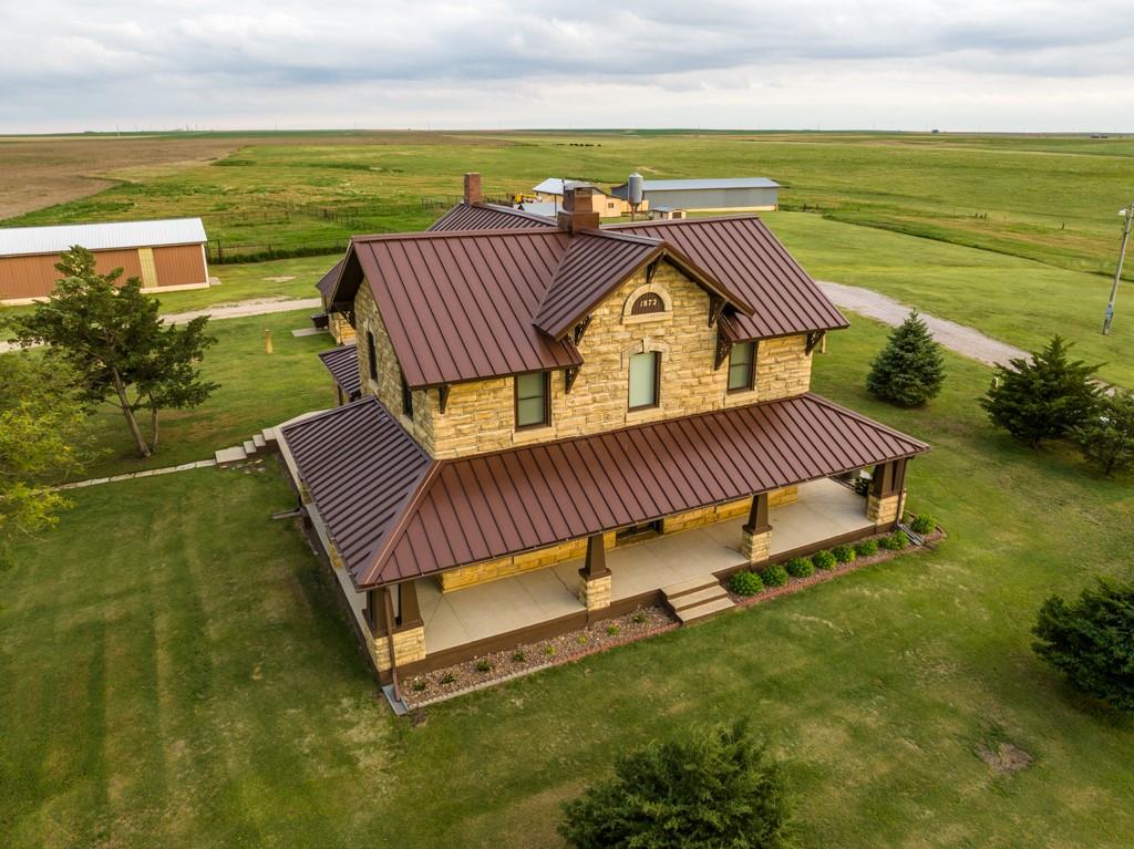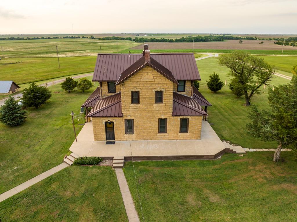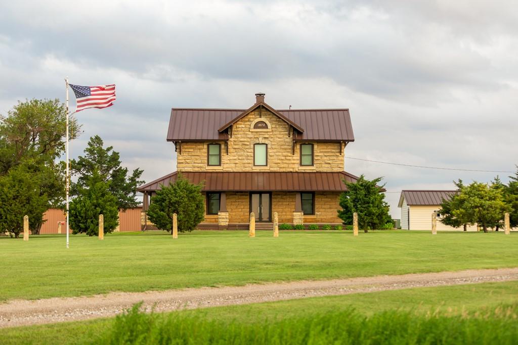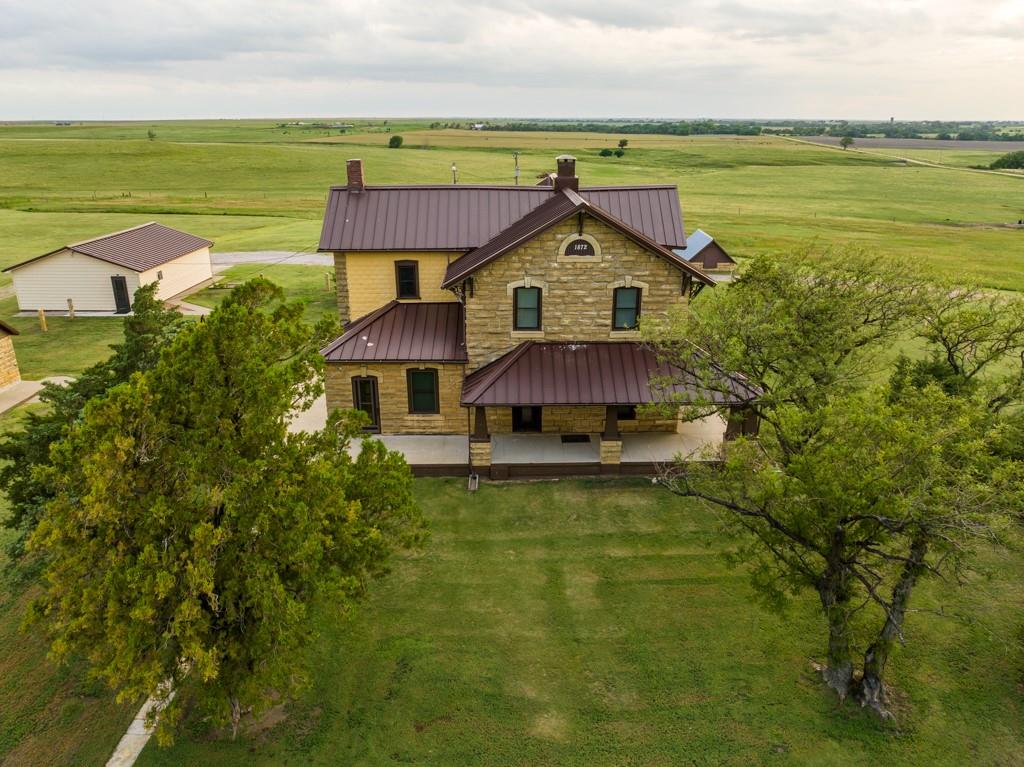 Motivated Sellers! Built in 1872 George Grant’s Villa is a National Historic Site and one of the biggest stories in the history of American livestock. Four Aberdeen Angus bulls arrived on May 17th, 1873 and changed the game forever. The rest is history. The views from the wrap-around porch are amazing. The home is built completely from limestone. It has been refurbished and includes the original tin ceilings, wood trim, doors, and gorgeous stair rail and banister. The home is equipped with all new double hung, double pane windows, central heat and air, fiber optic internet, and all your modern appliances. On the main floor, you have a spacious kitchen, living room, parlor, full bathroom/laundry room, and office. A gorgeous staircase leads you to the second floor where you’ll find 4 nice sized bedrooms, including a large master. A big bathroom is located just off the master bedroom. There is a partial basement with shelving, that makes for great storage. The property includes a 40 X 90 steel equipment shed, a 47 X 96 barn and hay storage building, an oversized, insulated two-car garage, 2 large grain bins with internal auger systems, a chicken coop, a large 90 foot cattle loafing shed, a dairy barn, and many other multi-use outbuildings. A brand new steel corral system is located outside of the barn, and there’s new barbed wire fencing throughout the property. The back 15 +/- acres are currently pasture that is hayed and would make a perfect place to hold a few horses or a couple Angus steers. An additional 19 acres of hay meadows on the front of the farm could be put into pasture or swathed and bailed like it currently is. This property would be a great place for a business owner that needs ample space to store their equipment. It would make an ideal location to calve out your herd. It’s also a perfect place to raise a family and sets up to be an incredible hobby farm, with plenty of space for pigs, chickens, lambs or any other 4H projects you can think of.