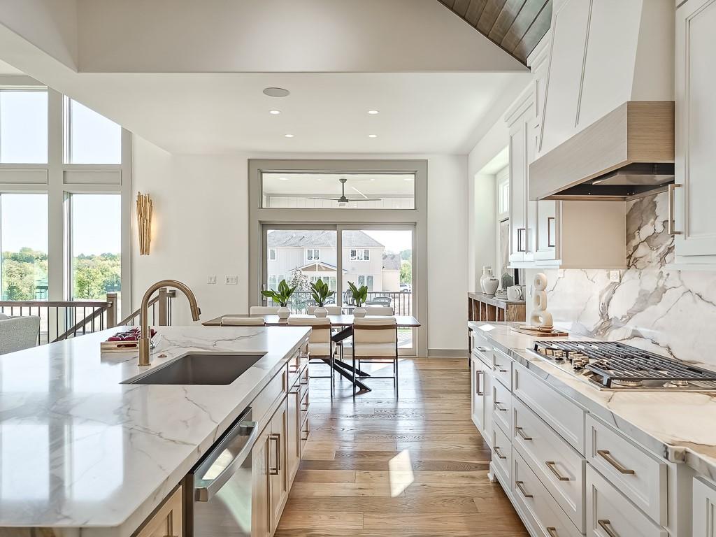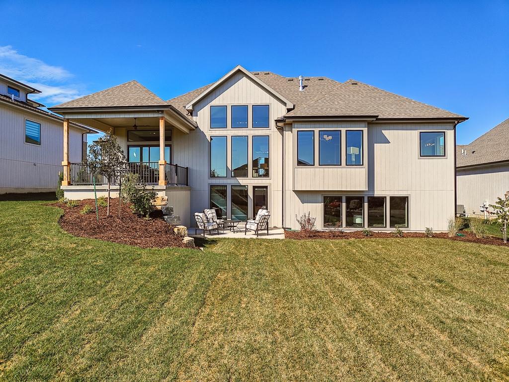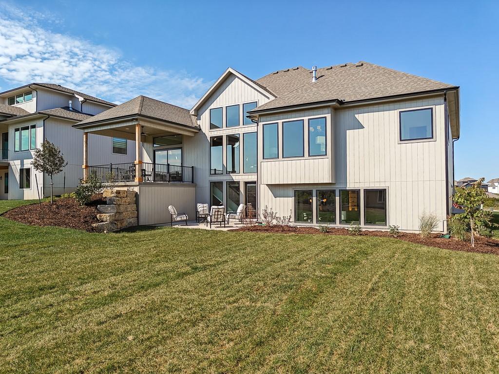 Welcome to the gold award-winning Brookridge IV by the esteemed Don Julian Builders. This reverse 1.5-story model in Bristol Highlands Estates blends luxury with livability. Enter through double doors into a dramatic foyer and great room with 2-story windows, vaulted wood-beamed ceiling, and a striking stone fireplace to impress from the moment you step inside. The kitchen shines with an oversized island, 5-burner gas cooktop, custom hood, vaulted ceiling with skylights, and a massive walk-in pantry with prep space and second fridge. Just off the dining area, step onto the covered deck—perfect for morning coffee or unwind in the evening with a view. The main-level primary suite offers a spa bath with dual vanities, soaking tub, tiled shower, and a walk-in closet that connects to the laundry. Two more bedrooms, a full bath, and a powder room for guests round out the main floor. Downstairs, the finished walkout basement is built for fun with a media wall, rec room, game space, spectacular bar, plus 2 more bedrooms with private bathrooms that walks out to a patio for another outdoor entertaining space. Nestled in the rolling hills of Shawnee, Bristol Highlands offers stunning views and a peaceful setting. Enjoy top-rated De Soto schools, shopping, dining, and outdoor recreation with nearby parks, trails, Shawnee Mission Park, and multiple golf courses. It’s the perfect balance of convenience and natural beauty. THIS IS A MODEL - NOT FOR SALE on lot 13.