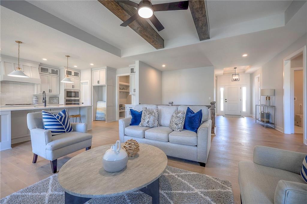 $15,000 Fall BUYER'S CHOICE REBATE available now! FORMER MODEL MUST SELL NOW! PRIVACY! Priced below reproduction price. Beautiful, 4 bedroom, Magnolia Reverse 1.5 story home on cul-de-sac lot backing to greenspace and lots of trees! Spacious kitchen with custom cabinets throughout, gas cooktop, quartz countertops and large, walk-in pantry. Great room features wonderful fireplace with custom wood beams in the vaulted ceiling. All wet areas are tiled, decorator finishes throughout. Lower level rec room features a walkup bar with sink. High efficiency HVAC and sprinkler system.