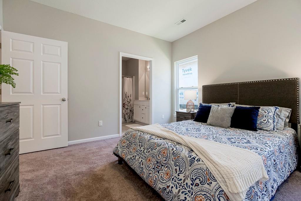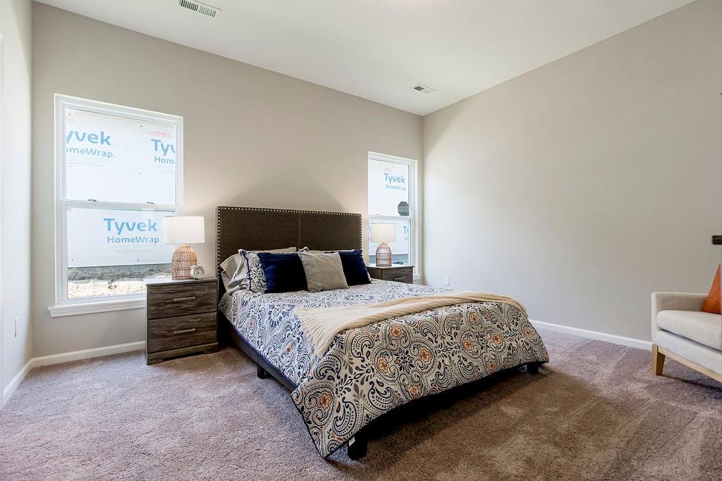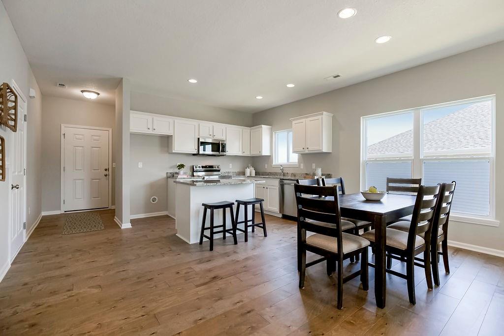 COMMUNITY CLOSE OUT - LOADED MODEL HOME NOW FOR SALE! This home is loaded with extras including: upgraded lighting, screened in porch, kitchen fridge, primary bath shower door, elongated toilets, garage door opener and greenspace lot. The Addison - One Level RANCH Living with a covered patio. Low maintenance exterior and fence-able yard. Our largest wide open floorplan at 1,458 square feet. Standard features: upgraded granite kitchen counters, white shaker cabinets, kitchen island, nice sized pantry, white oak wood floors in kitchen, entry, dining area and great room, big laundry room, high efficiency Carrier HVAC. Our Dupont Tyvek vapor barrier system keeps your home warm in the winter, cool in the summer and keeps utility costs down to a minimum. Energy seal foam and caulk package too! Modern color scheme (paint, counters, flooring and more) Local ownership with local vendors who live in your community - all backed by a 10 Year Insured Structural Warranty. Minutes to shopping, dining, and medical. Lawn maintenance / snow removal for $180/month including club house, pool and fitness rm. All homes in this community are FHA/VA financing Friendly. Community is near completion with 4 homes remaining from $319,950K.
