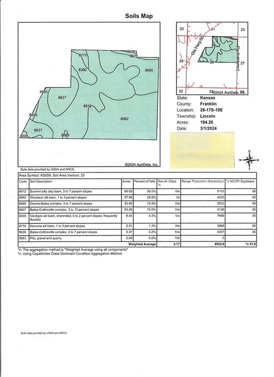 Beautifully rolling Franklin County Kansas 196-acre farm just off of a paved road. This farm is a mixture of cool season and native prairie pasture that is fenced with some cross fencing. There is approximately 80 acres of land, 52 of which is prime Class 2 soils, that has been farmed in the past that could be broken back out and farmed. The farm has 4 nice ponds and some trees for shade for livestock and wildlife habitat. The ponds are known for holding good populations of geese and ducks which makes this a nice farm for a waterfowler, too! Rural water and electricity are close by if the new owner wanted to build a home or shop.