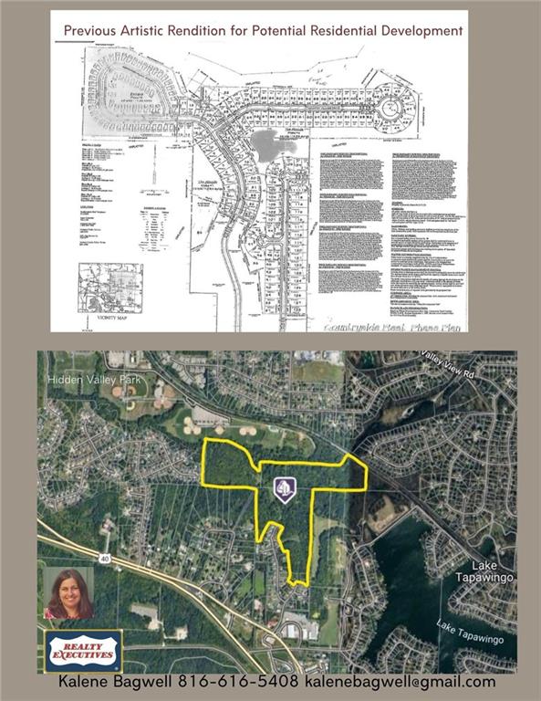 Rare raw land tract in growing Blue Springs submarket- ideal for residential development. Bordered by single family subdivisions, Hidden Valley Park and Lake Tapawingo in Blue Springs MO, this 51.380-acre property offers the tranquility of nature and modern amenities. The seller is including an additional 1.6 parcel with an income producing house that connects to the property making a total of 53 acres M/L! Access to the property is very convenient with 40 Highway, 291 Highway, Interstate 70, and 7 Highway in Blue Springs nearby. For potential development imagine a 100-120 lot (3-4 lots per acre) preliminary layout for single family homes nestled next to Hidden Valley Public Park. Infrastructure includes major utilities either onsite or within 1,000 feet including water, sewer, gas and electricity- significantly reducing extension costs. Blue Springs is averaging strong on new homes permit activity. At only 16K per acre these parcels are a potential investment for those looking to acquire land for future development as the city continues to grow! Building your dream home or community is a breeze with gas and sewer lines either already on the property or abutting it. It offers excellent educational opportunities in the Blue Springs zip code 64015. The zoning allows flexibility for residential development. Create a legacy with charming homes and lush green spaces. Contact us today to explore this enchanting acreage. Please do not access the property without prior permission; 24-hour notice is required. Additional 1.6-acre parcel touching property with rental home (will be included in this sale) makes for a total of 53 acres. NOTE: No access to home without a prior written contract. Tenants are month to month.