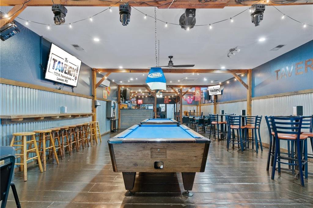 Nestled in the picturesque town of Lawson, Missouri, this historic tavern stands as a beacon of charm and character on the main business strip, directly across from the community park, splash park, and the iconic Lawson water tower. The exterior boasts a striking stone finish façade with metal siding, drawing in visitors with its unique blend of old-world allure and modern appeal. Step inside, and you'll be welcomed back to a simpler time by the historic old wooden floors, cedar beams & custom bar crafted finishes setting the mood and atmosphere of a welcoming neon light night out with friends. The luxurious renovated bar area seamlessly transitions into a space perfect for pool tables, DJ accommodations, and hosting events and activities. The ambiance is rich with the essence of a traditional tavern, inviting guests to unwind and create lasting memories. The fully upscale renovated bar offers a sophisticated setting for patrons, complete with updated bathrooms, meticulously maintained cleanliness, and state-of-the-art stainless steel kitchen facilities. Every detail has been thoughtfully considered to provide a top-notch experience for guests and ensure a seamless operation for the discerning owner. This property has been lovingly renovated inside and out, preserving its historical significance while offering modern amenities and comforts. It's a rare opportunity to own a piece of Lawson's heritage and create something truly special in this vibrant community. Embrace the old-world charm of a classic tavern and let your imagination run wild as you capture the essence of this unique establishment. With its prime location, rich history, and upscale amenities, this tavern is poised to become a beloved destination for locals and visitors alike. Don't miss your chance to be a part of Lawson's story and shape the future of this iconic bar and grill.