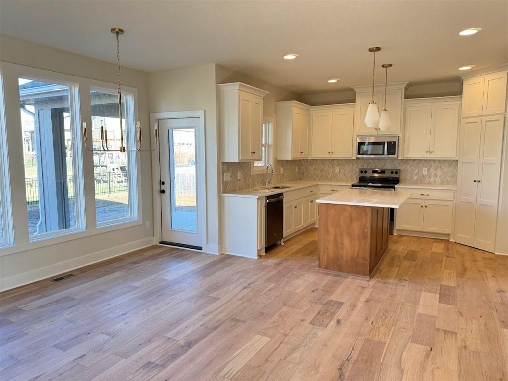 The Madison (Elevation 3), by Rodrock Homes, offers an open floor plan featuring floor to ceiling stone wrapped fireplace in the great room. Spacious kitchen with large pantry. All bedrooms including the primary are located on the second floor, along with laundry room. Basement includes 9' walls with 3/4 bath stub-in. Taxes and Measurements are estimated. Buyer or Buyer agent to verify. All in the coveted Stonebridge Trails, A Rodrock Community, with Amenities that provide a wonderful lifestyle and close to Heritage Park. There are 2 clubhouses, 1 with work out facility, 4 pools, playgrounds, basketball and tennis courts and nature trails through out the neighborhood. Nearby schools include Prairie Creek Elementary (~0.6 mi), Woodland Spring Middle (~1.0 mi), and Spring Hill High (~5.5 mi). Daily conveniences are close by, including Natural Grocers (~4.2 mi), Price Chopper (~4.5 mi), and local coffee spots (~1–1.2 mi). Taxes, square footage and measurements are approximate, buyer to verify.