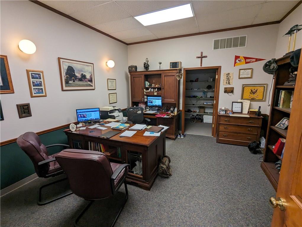 Commercial building with ready to rent offices on the 712 Oregon side. Owner willing to lease back the 714 Oregon side. 712 Oregon side boasts a 1060 sq ft reception area, 3 office suites, conference room, training suite and bathroom. New roof on entire building in 2021. Untouched 2nd floor apartments could be remodeled for an additional 4250 sq ft of rentable space. All tenant leases at time of purchase to transfer.