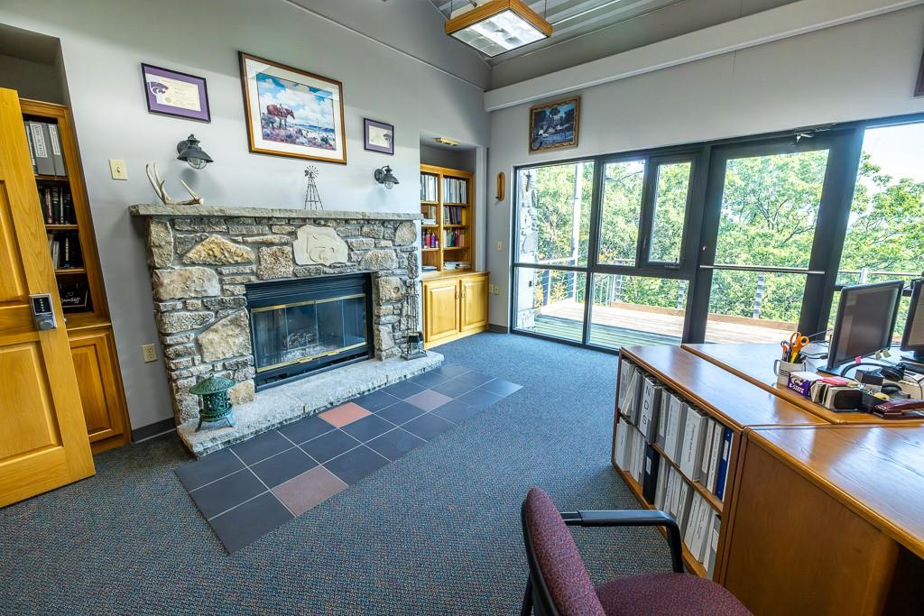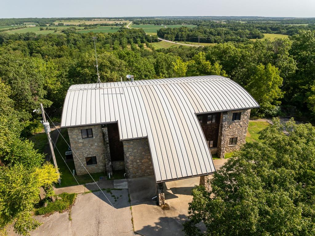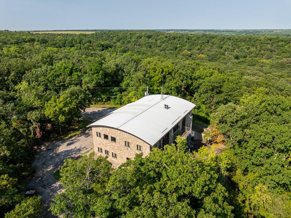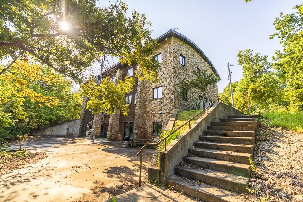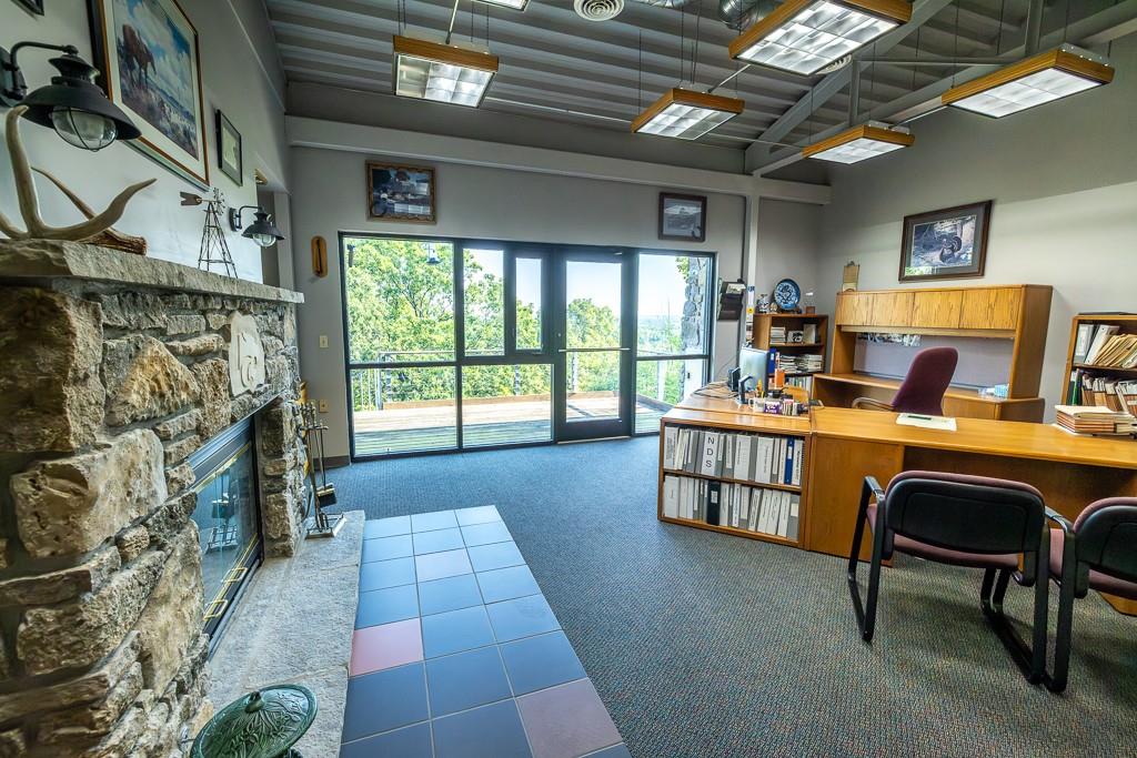 Unique Multi Purpose Commercial Property on 37 Acres Midwest Land Group is proud to present one of the most feature rich and unique opportunities in South East Kansas. This 10,000 Square foot multi use commercial building on 37 pristine acres sits above the Marmaton River with private paved access. The three story, stone and steel structure boasts some of the finest views in Bourbon County and sits perched atop a Pecan grove nestled into the bend of the river. This property can be used as commercial office space, hunting lodge, wedding venue or regional headquarters and comes ready for you to take it any direction you wish. The building is three stories of just over 3,000 square feet each completed in the winter of 2000, of structural steel and stone finishes. Some of the stone was sourced locally from the river and surrounding areas and great care was taken with each detail. 6 Baths and 8 Offices with 2 fireplaces currently make up the footprint but there is ample bonus space and rooms to re configure for your needs. A full kitchen and safe room round out the features in what could be a destination lodge, venue or commercial space. The bottom story is a walk out basement to a concrete patio and common area just begging to host private events! The 37 acres of land is classic Bourbon County timber and river bottom full of deer and turkeys. The topography allows for the structure to sit on the highest point of the land and from the third story the views are awe inspiring. Owned river frontage gives the buyer more opportunity and the pecan grove is a unique addition. There is an overflow parking lot below the building with a lighted and paved walking path through the woods with the highlight being a wonderful bridge over the creek that has been used for countless wedding and senior photographs over the years.