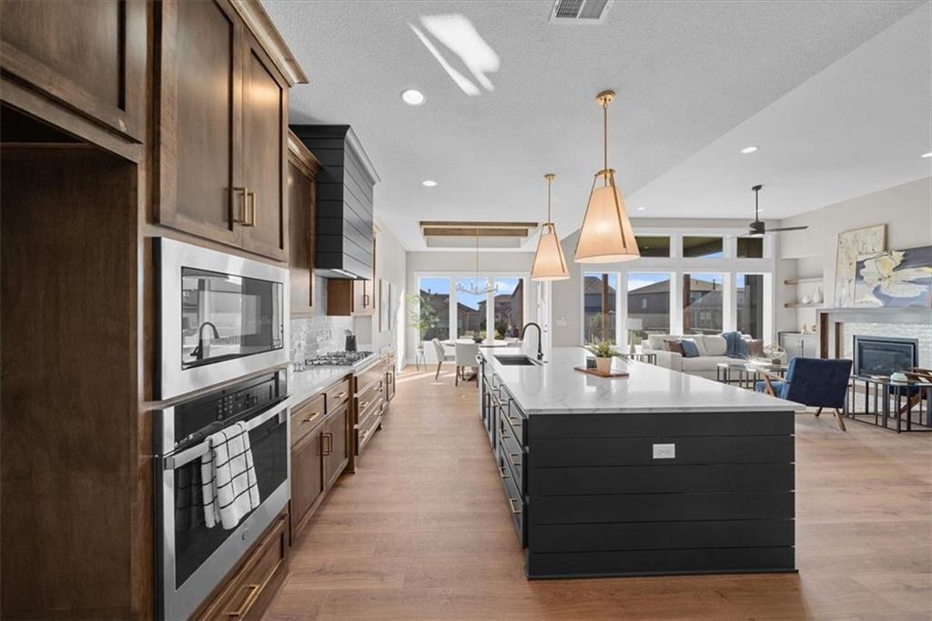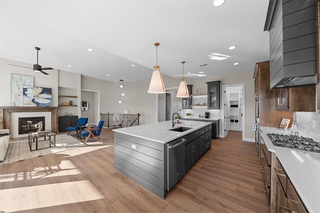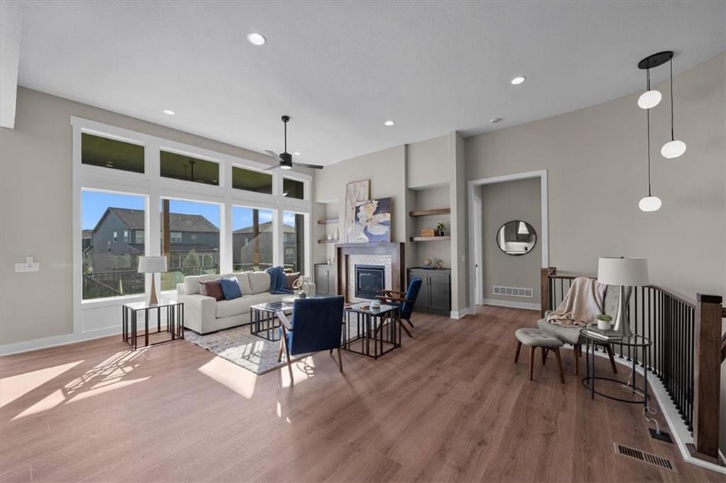 MOVE IN READY!! Self-tour this home via the Nter Now app! Inspired Homes introduces the stunning Contemporary Elevation of its most popular Reverse 1.5 floorplan, the WINDSOR. This home has A+ curb appeal with a darker exterior color, upgraded stone & garage doors, not to mention the landscaping! This model features 4 bedrooms and 3 full baths. The welcoming Great Room has two focal points-the wall of windows & the transitional-style fireplace with bookcases flanking it. A chef's delight kitchen with maple cabinets, gas cooktop with built-in appliances, prep pantry & more. Oversized back covered deck with separate concrete patio with a Daylight basement package perfect for outdoor fun and entertaining. There are wood floors or tile floors on the entire main level. Relax in the spa-like Primary Suite with a beautiful tiled shower & free standing tub. The well designed closet even has 3rd row pulldowns & a door to the Laundry Room with sink. The 2nd bedroom on the main floor could also be used as a study. Downstairs is the entertaining hub of the home with a stone fireplace & wet bar. Also in the lower level you will find 2 secondary bedrooms & 1 full bathroom. Enjoy Pryor Ridge's convenient location with easy access to everything....plus the community's premiere amenity complex that features a sparkling jr-competition sized pool, playground, basketball & pickleball courts, off-leash dog park, open green space and walking trails. ** Note photos are of similar model. See last few photos for actual home**