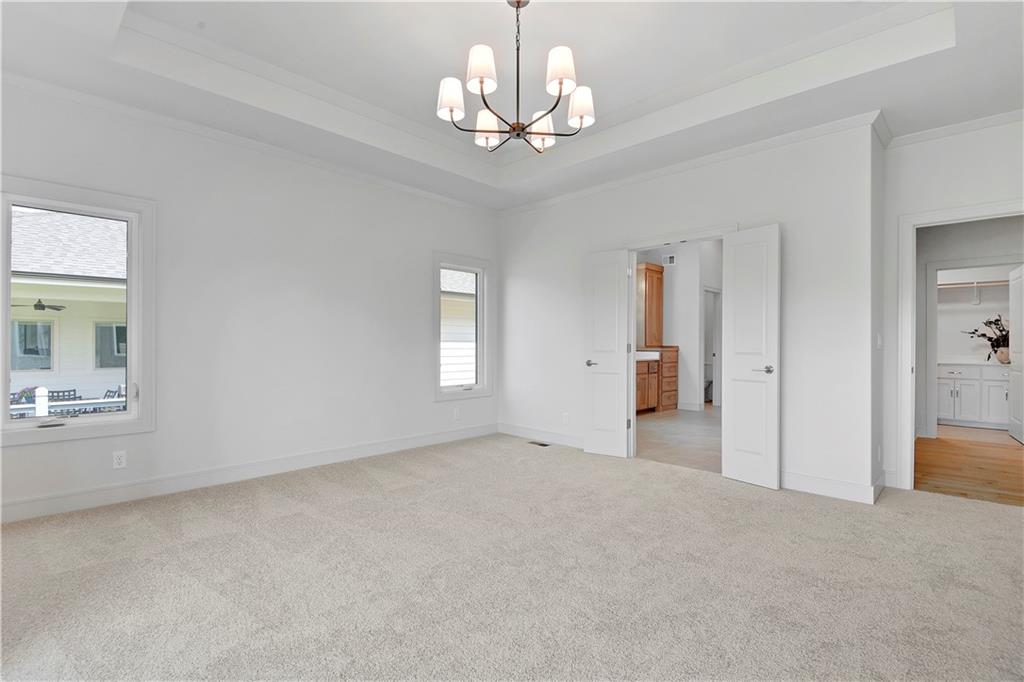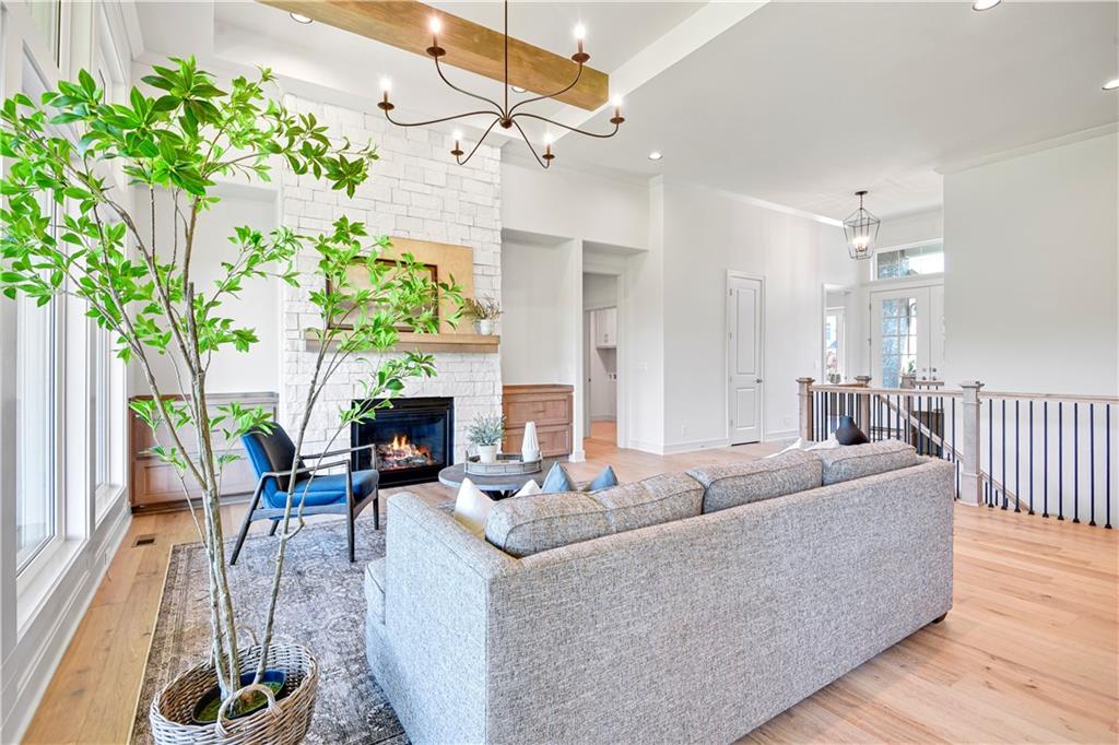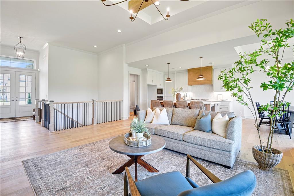 Move-In Ready! Stunning Jefferson II Reverse 1.5 Story by Bickimer Homes on a lovely walk-out lot backing to green space & tree-line! This 4 bed, 4.5 bath showstopper is packed with thoughtful upgrades and stylish finishes throughout. Enjoy a spacious open-concept layout with soaring ceilings, tall windows, gourmet kitchen featuring upgraded quartz countertops, Kohler Silgranite sink, oversized Step Shaker island, and stainless appliance package. The luxurious main-level master suite includes a spa-inspired bath with upgraded tile and fixtures. Entertain with ease on the covered deck or cozy up next to the F/C stone fireplace with custom built-ins. Finished walkout lower level rec room ft. front/back wet-bar, 2 bedrooms & 2 full baths. Additional features include hardwood floors in the study and stair landing, designer stair carpet and double front doors. This home combines elegance, comfort, and convenience! This home sits upon lot #10 in The Enclave @ Manchester Park. This wonderful community is walking distance to elementary school, has neighborhood pool, and is within very close proximity to everything else you'll need! Home is finished & staged.