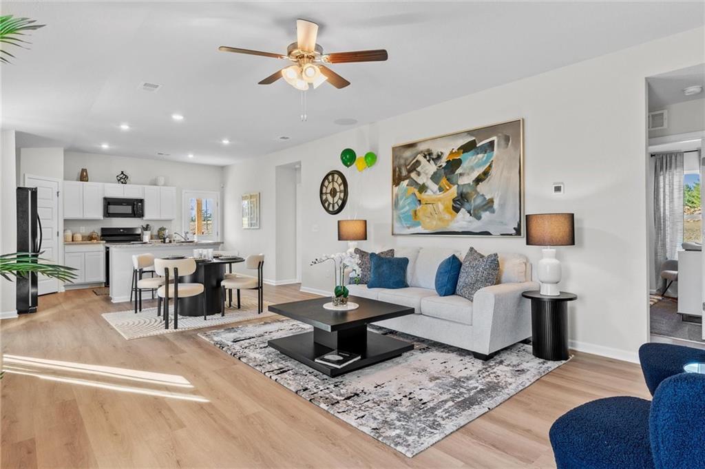 MODEL HOME NOT FOR SALE. The Beaumont is a charming 3-bedroom, 2-bath home designed with modern living in mind. Featuring a spacious open floor plan, this home ensures easy interactions and a comfortable lifestyle. The kitchen includes energy-efficient appliances and seamlessly connects to the living area, perfect for family gatherings and entertainment. With a 2-car garage, you'll have plenty of space for vehicles and storage.