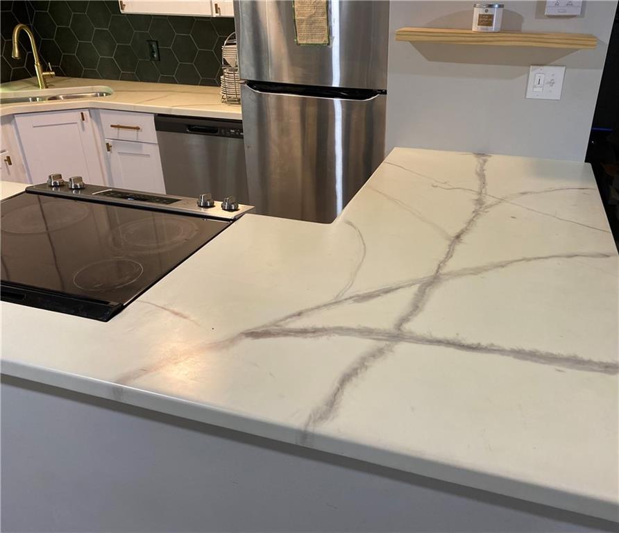 Walk into an open concept living/dining/kitchen area. Gorgeous solid surface countertops with flat top built-in stove. Home was remodeled around 3 years ago. Kitchen features newer cabinets, SS stove, refrigerator and d/w. Dining area has custom built in benches which also offer storage. Living room features an accent wall. Bathroom boasts beautiful solid shower walls. Vinyl plank flooring is throughout the home. There is a storm shelter with a sump pump off the garage. Kitchen leads to a huge screened in porch. The back yard is fenced with 2 sheds for storage. There is a one car garage and two car concrete driveway. This home is modern and functional.
