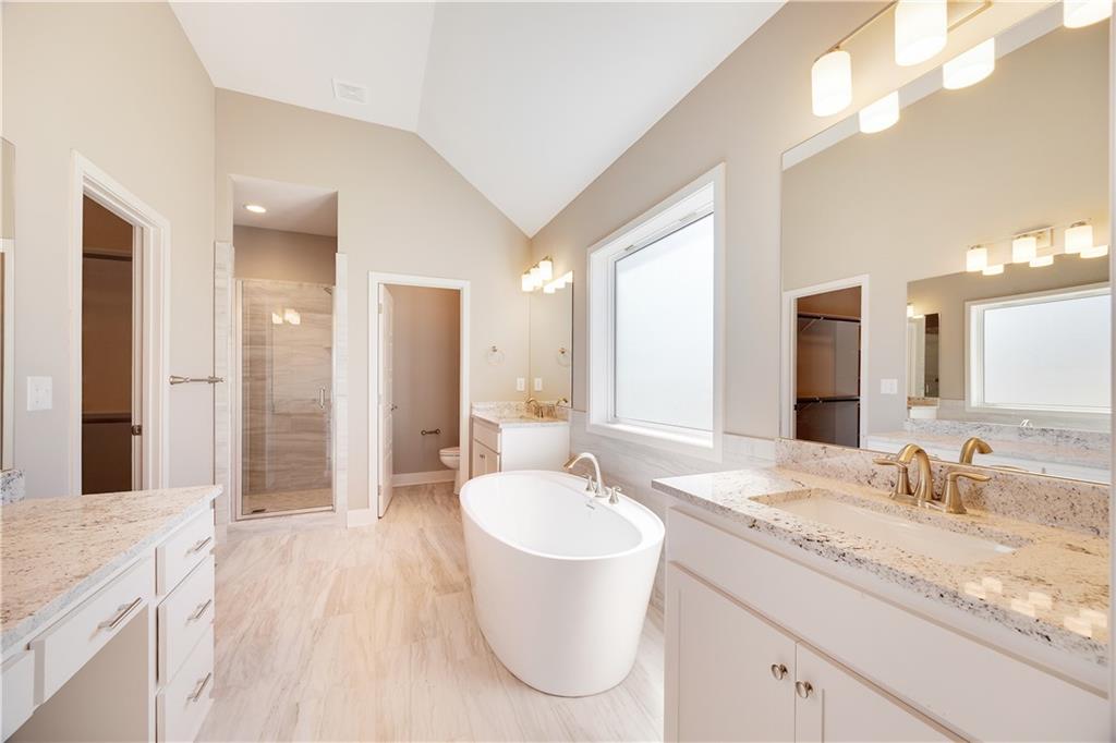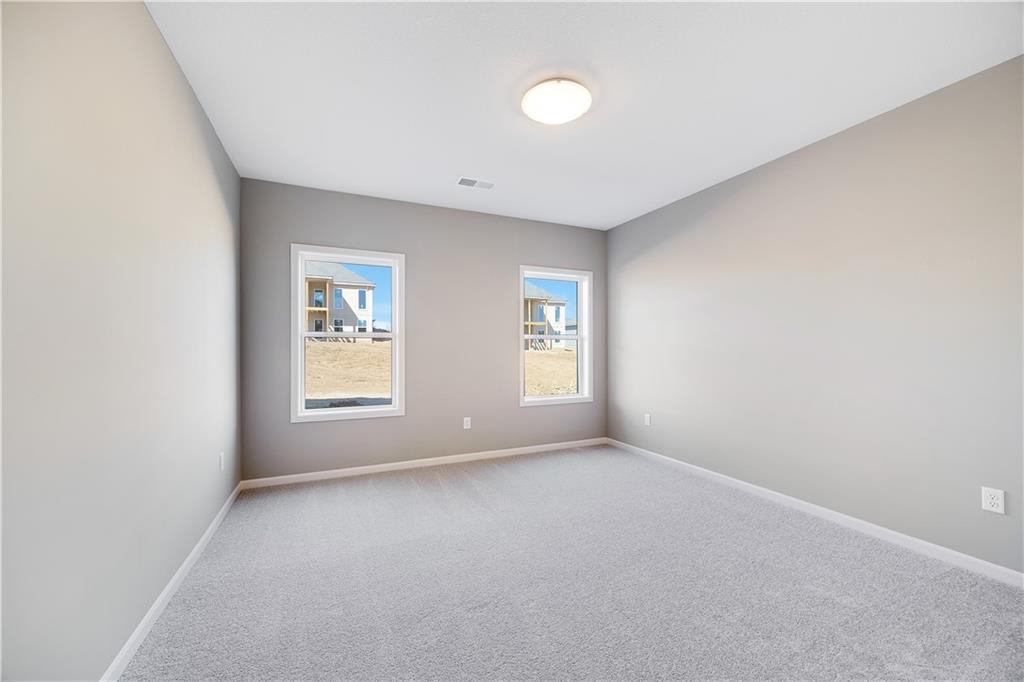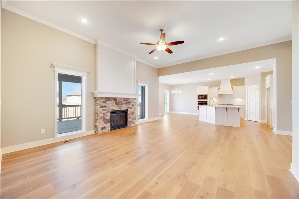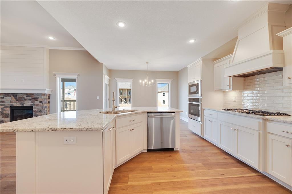 The Drake by Hoffmann Custom Homes is a Reverse 1.5-story home filled with natural light, high ceilings, and refined modern finishes. The main floor features honey-colored engineered hardwood floors, a stylish kitchen with light creamy granite countertops, brushed nickel hardware, gas cooktop, wall oven, enameled cabinets, and under-cabinet lighting. An earth-toned stone fireplace with enameled wood trim accents warms the great room, which opens to a covered deck. The main level features the owner’s suite - complete with a free standing soaker tub, double split vanities, and a generous walk-in closet - plus a second bedroom or office, a full bath, and a convenient laundry room. The finished lower level adds two bedrooms, a full bath, a spacious rec room with a granite wet bar, and walkout access to a covered patio and oversized backyard. Engineered for modern living with 2x6 exterior wall construction, Pre-wired for easy solar panel installation, a 10-year structural warranty, EV charger compatibility, and enhanced energy-saving features. The subdivision’s sales office is a Drake model, available to tour during office hours. The home is fully complete; photos represent the property as built.