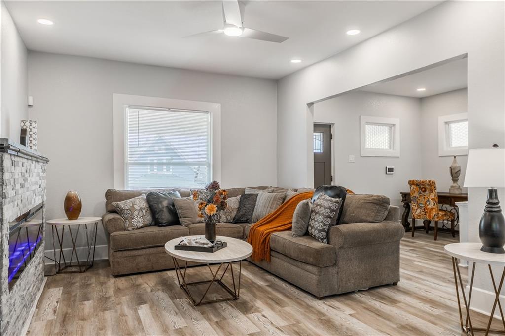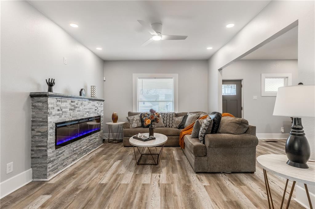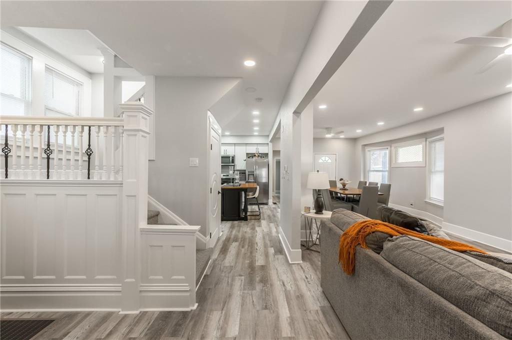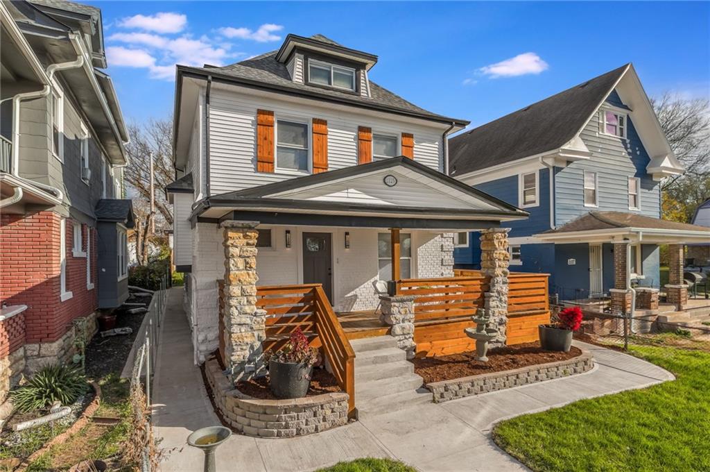 Fantastic opportunity to own a newly redone 3 story, 5-bedroom, 4.5-bathroom home overlooking beautiful downtown KCMO. This home has all the features with a spacious wide-open floorplan, a large luxury electric fireplace in the living room, fully loaded kitchen with updated stainless appliances. The first-floor level has a bedroom with full bathroom attached to the suite, with a separate entrance. This unique floorplan has a double master with one master bedroom on the 2nd level, that has its own private entrance, sitting/sunroom and full bathroom. Laundry room is located on the 2nd floor, along with 3 other large bedrooms and a hallway bath. Third floor level is like a dream. It's a huge spacious bedroom, with a large master bathroom, with a picture-perfect view of downtown KCMO right outside your window. Newly landscaped, detached garage in rear of home, huge front porch, upper deck, and so much more! This home won't lasty! Hurry ~ Buyer's benefit to a 10yr tax abatement. 10yr, zero property taxes what a huge savings!
