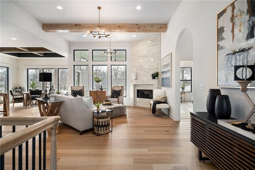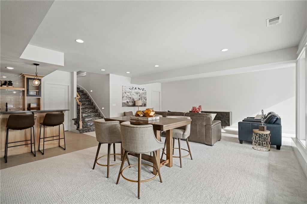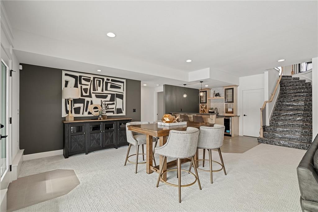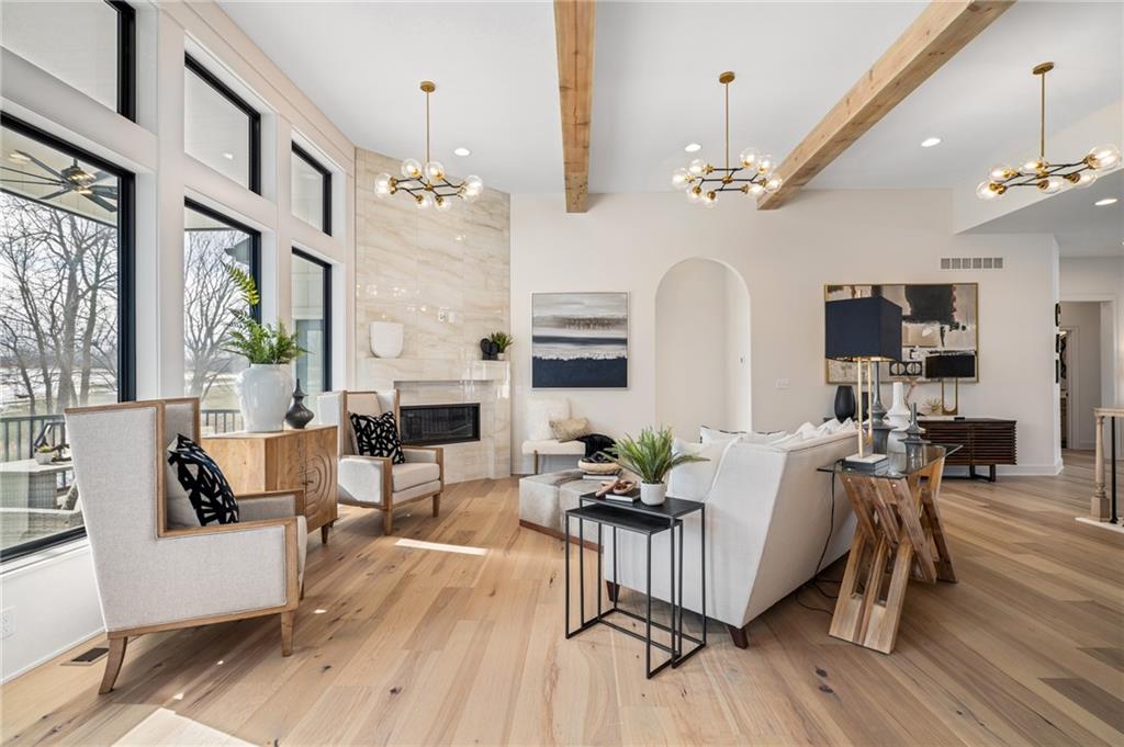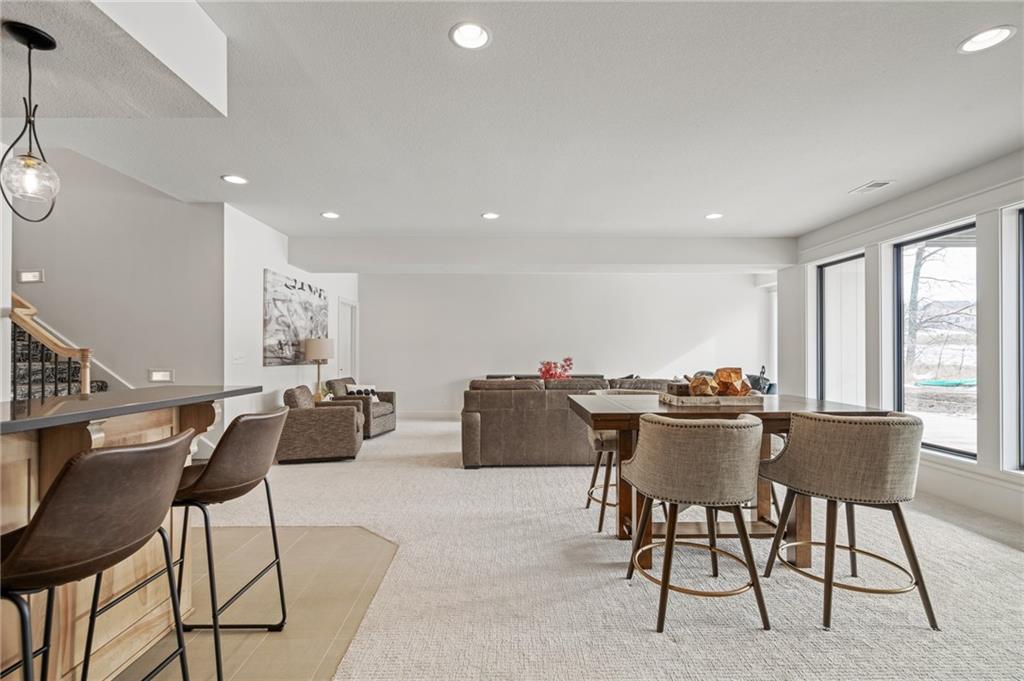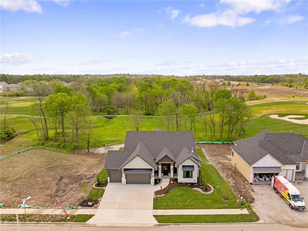 PRICE REALIGNED! MODEL HOME IS NOW FOR SALE. This popular "Expanded Windsor" reverse 1/2/ ranch floor plan by C&M Builders truly checks all the boxes both inside and out! Situated on one of Creekmoor's most beautiful golf course lots, it offers privacy while still providing a front-row seat to the action on the course and the occasional visit from local wildlife like deer. Inside, the home boasts a spacious primary suite with a large bath, walk-in closet, and direct access to the laundry room for added convenience. On the same level, you'll find another versatile room that can serve as a bedroom or office, along with a bath. The expansive great room features vaulted ceilings, a cozy fireplace, and a wall of windows that bring in tons of natural light. This opens up to a fantastic kitchen and dining area, perfect for hosting gatherings. Just off the dining area, a covered deck offers a tranquil spot to enjoy your morning coffee or unwind at the end of the day. The walk-out lower level is equally impressive, with two additional bedrooms, a bath, and a large family room with a wet bar—ideal for kicking back and watching your favorite games, especially cheering on the Chiefs!