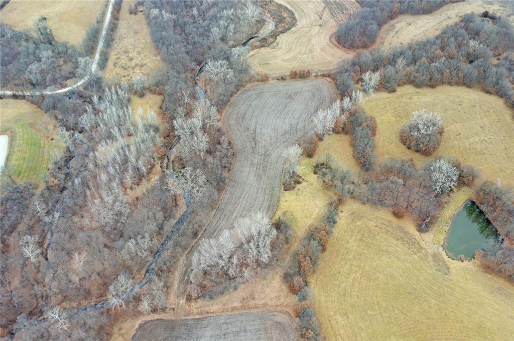 This property has it all; 28 m/l tillable acres of prime creek bottom land, abundant wild life for hunters, great mushroom hunting, and an adjacent stream for fishing. Crop ground is currently share leased (1/3-2/3) through 2025. Great retreat and investment property. This farm has recently been surveyed to separate it from the adjoining 52.74 acre plot. The stakes with orange flags indicate property boundary points. Property will be recorded with county upon contract acceptance.