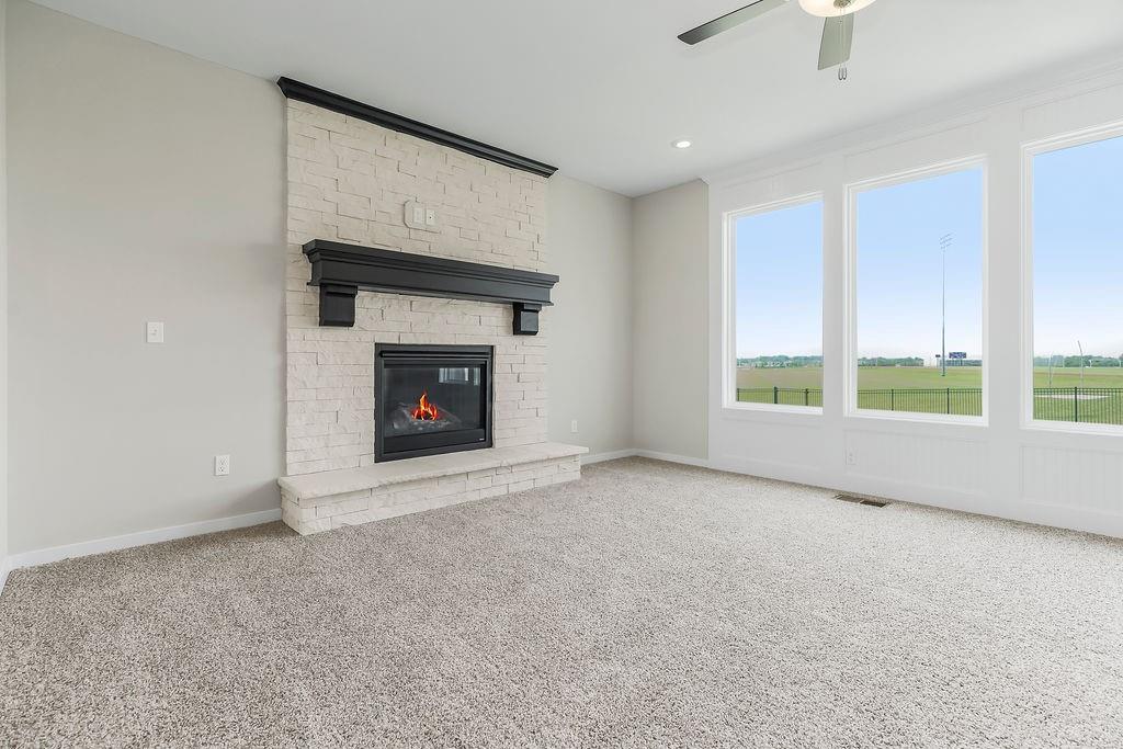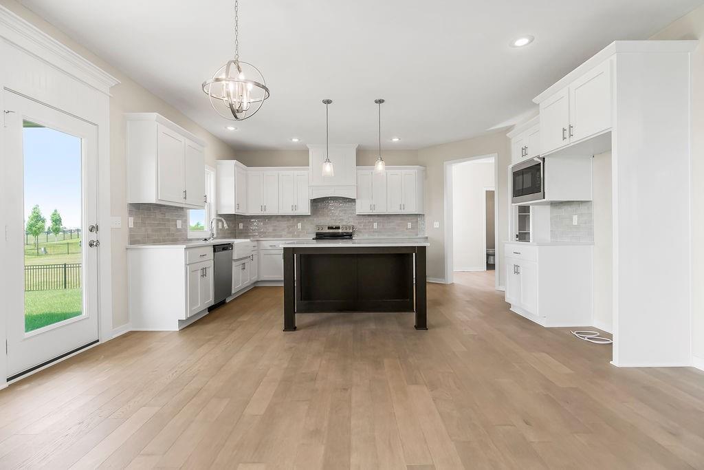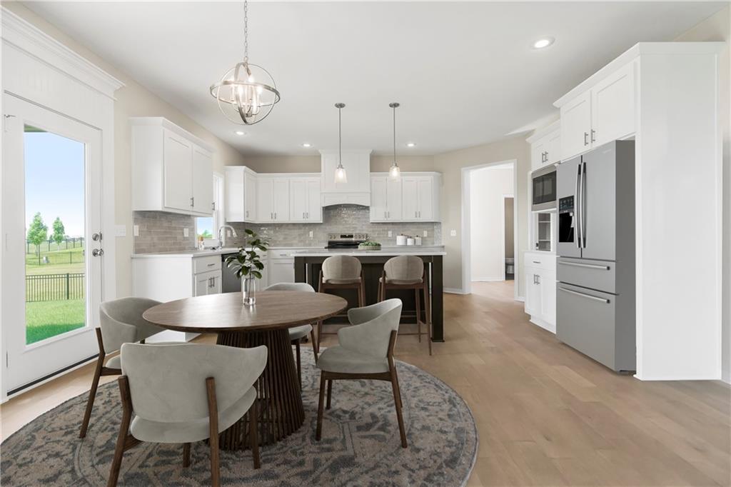 $10,000 price improvement on the popular Levi XL by Prieb Homes. Now Move-In-Ready! 5 bedrooms and 4 baths located on a large homesite that backs to greenspace. Front Porch elevation. The Dining Room is located off the front hall and offers a beautiful room to celebrate with family/friends. The Great Room has a stone fireplace with wood mantle. The Kitchen has a Large Quartz Center Island with counter seating, includes eat in area for kitchen table, and a large walk-in pantry. There is also a 5th bedroom/flex room on the 1st floor right off the Mudroom with Boot Bench and Entry Closet. Large Primary Bedroom and Primary Bath Walk-in Shower is upstairs with the other 3 bedrooms, 2 baths and laundry room. All bedrooms have vaulted ceilings, tiled floors in all bathrooms and laundry room. Covered Patio and Sprinkler System included outside. Sq. Ft. of home is Approx. please verify with onsite agent. Stonebridge community amenities include 4 Pools, 2 Clubhouses (1 is a gym), Parks, Playgrounds, Trails and Sport Courts. We are located right next to 1238 Acre Heritage Park is 2.2 miles away with a Lake, Dog Park, Sports Parks, Golf Trails and so much more. Garmin International Headquarters 2.0 miles away. 1-35 and 151st Street 2.4 miles for easy highway access and Olathe Medical Center Pavilion Hospital is 4.6 miles. 7 Acre Arbor Landing Park is 0.3 miles. Our Rodrock Development "Mom's Council" and Social Committee are quite active. 2020 National Blue Ribbon award winning Prairie Creek Elementary and Woodland Spring Middle School are 0.2 miles away in the community. Photos are of the actual home. Taxes are estimated. Mileage is estimated.