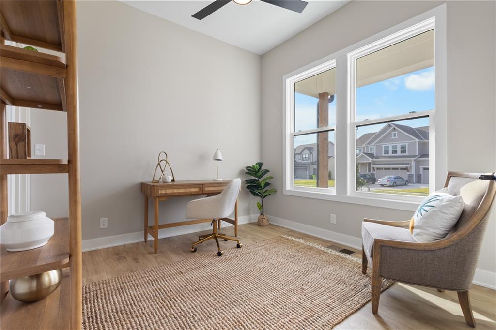 $10k Builder Incentive for closing costs or rate buy-down assistance if you close before 12/31/25! Move in Ready! The Inglenook by Inspired Homes features a stunning Modern farmhouse exterior, oversized porch and black metal roofing. Large flat lot and yard is perfect for evening BBQ's on your perfectly large, covered patio. Unique and fantastic layout with all of the rooms you are looking for. Glass doors as you enter your home office with walk-in closet to store all of your office paperwork. Office can double as main floor 5th bedroom. Main floor features 10 ft ceilings and large picture windows. Large kitchen with high end finishes, quartz counters, built in appliances with gas cooktop, upgraded lighting, under counter lighting, oversized walk-in pantry and opens to and even larger great room that features custom built in's next to fireplace. To die for breakfast room with panoramic views and custom X-beam ceiling detail. Rare and oversized 3 car garage fits your TRUCK or LARGE SUV! 2nd floor is equally as impressive. Large bedrooms on second floor all featuring walk in closets. Master suite with high end master bath and closet and convenient 2nd floor laundry. This home has many upgraded features and is at an incredible value. Unfinished basement is ready for a future finish with stubs for a bathroom and wetbar! Pryor Ridge Community offers its homeowners a sparkling jr-competition sized pool, playground, basketball & pickleball courts, off-leash dog park, open green space and walking trails....all within a convenient and close location to shopping, restaurants, grocers, entertainment and highway access!