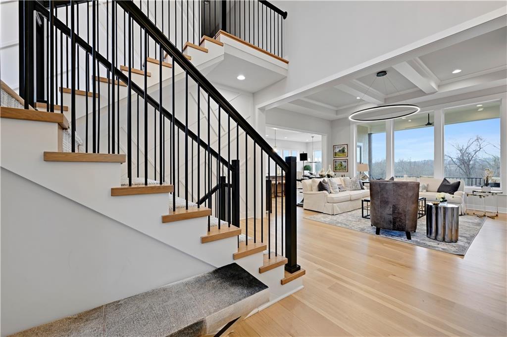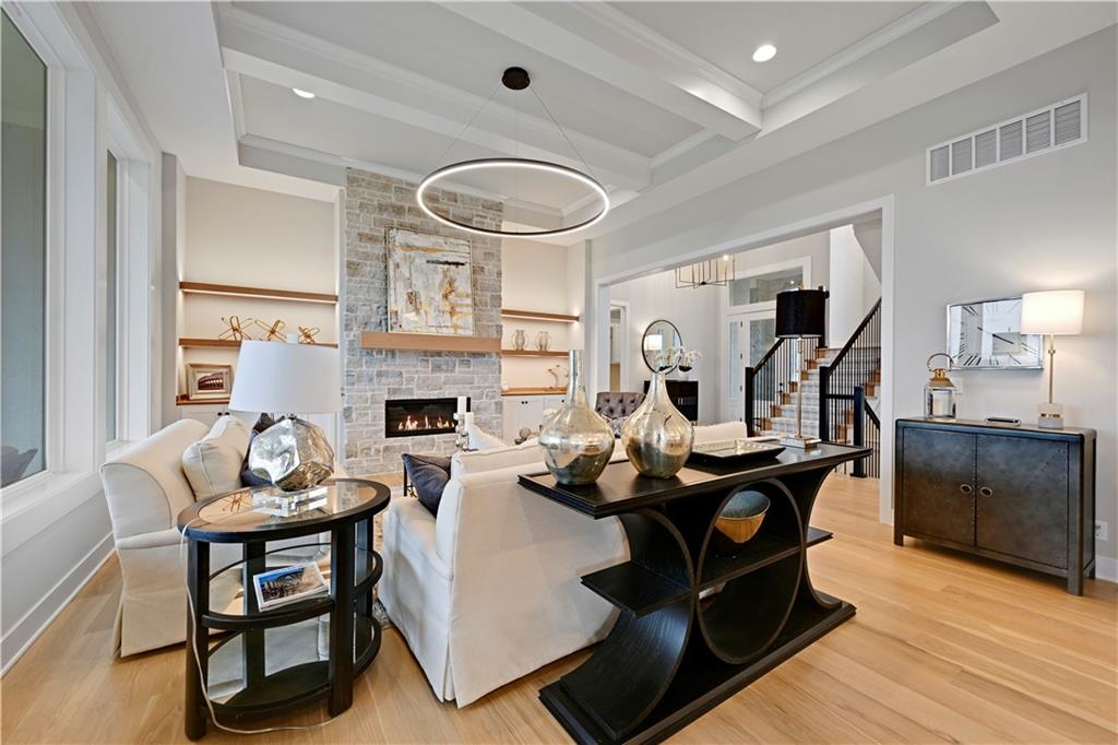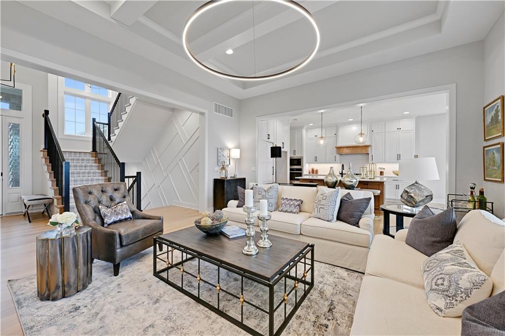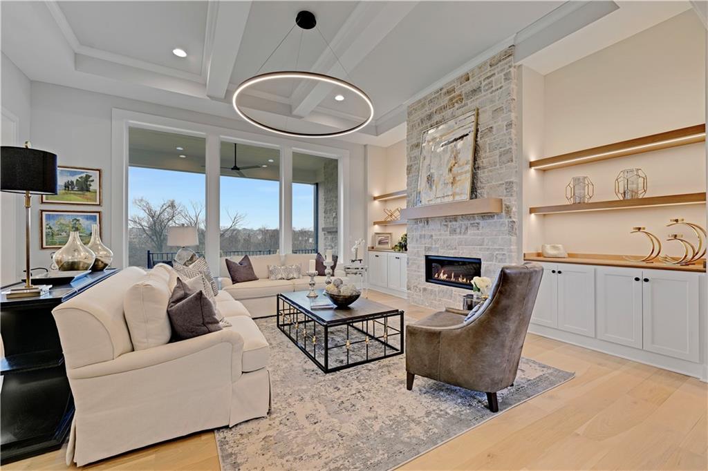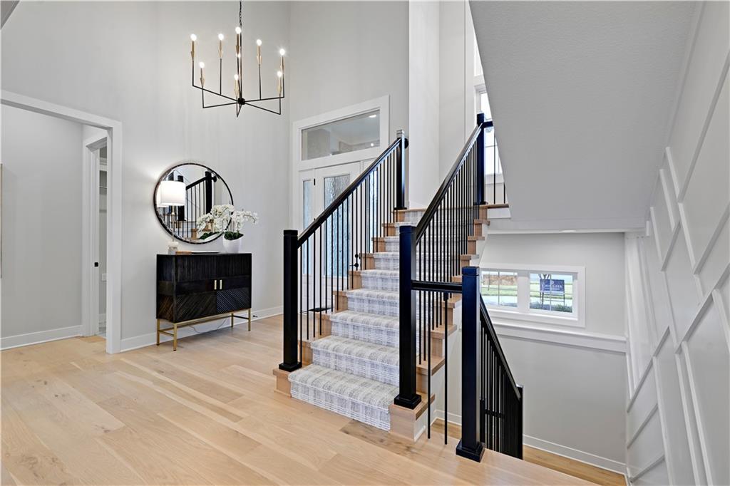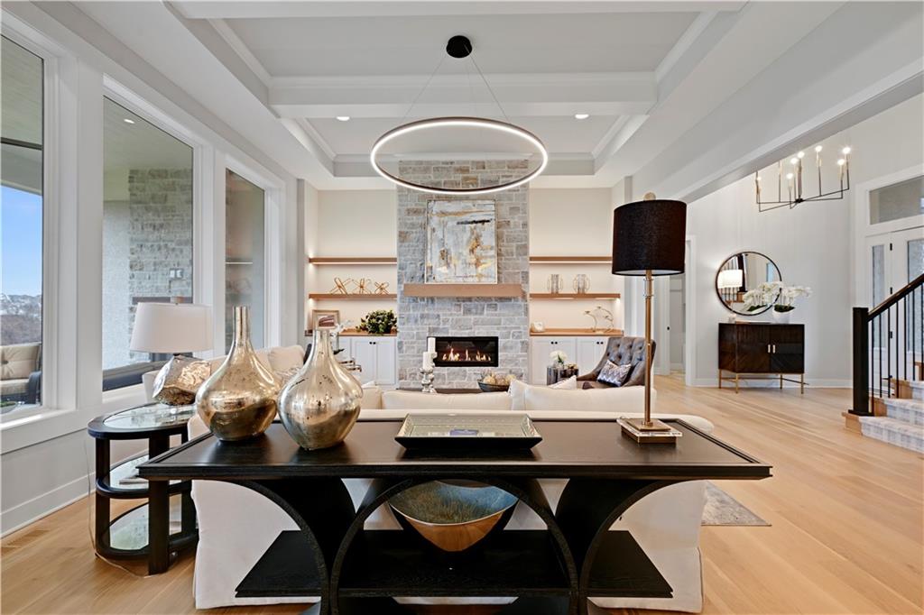 Luxury and craftsmanship define the Revised Bristol, a beautifully designed home by John Geer Custom Homes. With 5 bedrooms, 5.5 baths, and 4,718 square feet of meticulously crafted living space, this home offers the perfect blend of elegance and functionality. Situated on a walkout lot backing to serene green space, the home features 10-foot ceilings on the first level, enhancing its spacious and airy feel. The great room fireplace, with a floor-to-ceiling stone veneer, serves as a dramatic focal point, complemented by 7-inch white oak hardwood floors throughout the entry, kitchen, great room, pantry, and hallways. The custom soft-close cabinet package extends through the kitchen, master bath, and powder bath, combining style with superior craftsmanship. The finished lower level adds to the home’s grandeur, featuring a bar and custom-built entertainment center, perfect for gatherings and relaxation. Outdoor living is just as impressive, with a covered porch and lanai showcasing a stone veneer fireplace, ideal for year-round enjoyment. A front-entry, three-car garage provides both convenience and curb appeal. To personalize their dream home, homeowners will receive 20 hours of professional design consultation with Madden McFarland Interiors, ensuring a tailored and refined living experience. The Revised Bristol is where modern luxury meets timeless design—an extraordinary place to call home.