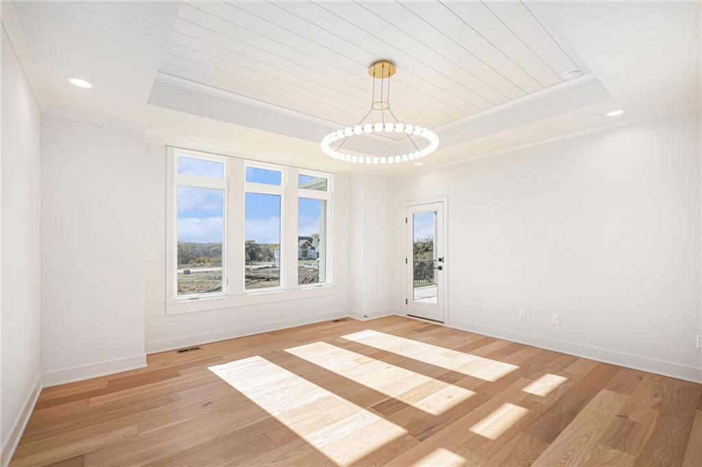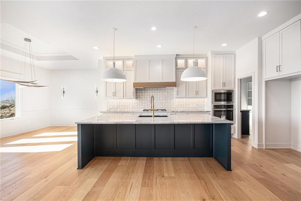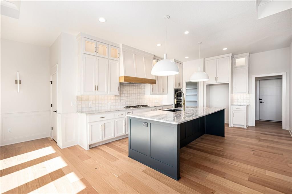 MOVE-IN READY! Located on Lot 81 prepare to be wowed by The Santa Barbara plan is one of Hilmann Home Building's newest 1 1/5 Story plans offering 5 bedrooms and 5 baths. The open main floor living features a great room with hardwood and vaulted ceiling, floor-to-ceiling fireplace, and a view to the outdoor covered living area, great for entertaining. The kitchen features beautifully designed cabinetry with a large island and granite countertops. The huge walk-in pantry / optional prep kitchen provides ample storage. The beautiful primary bath has everything you need including a large vanity space, walk-in shower, free standing soaker tub and TWO large walk-in closets. The primary bedroom has a convenient door leading to the covered porch. The main floor laundry boasts a utility sink with cabinetry and access from the main living area and the master bedroom closet. The 5th bedroom on the main floor can also serve as an office or study with access to a full bath. Each bedroom throughout includes its own bath and walk-in closet. 2nd floor features a spacious loft with fireplace plus three bedrooms each with a walk-in closet and private bathroom. Additional laundry hook-up on the second floor for convenience. Taxes are estimated. Don't miss this opportunity to own a beautifully crafted, loaded with upgrades, home in a fabulous neighborhood! Taxes are estimated. Don't miss this opportunity to own a beautifully crafted, loaded with upgrades, home in a fabulous neighborhood- minutes from our K-12 schools, highways, shops and restaurants. Models Open Daily, 11 am – 5pm, and Sunday, 12-5pm. Visit the sales office at 12411 W 183rd Terrace, Overland Park. THIS HOME IS MOVE-IN READY.