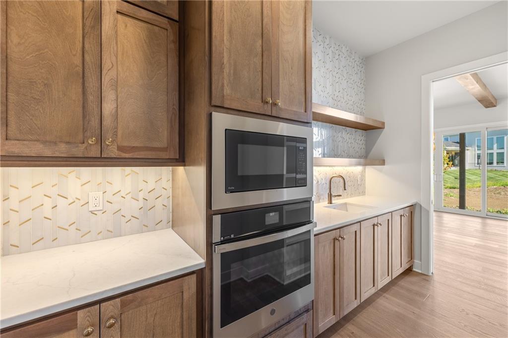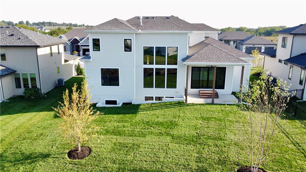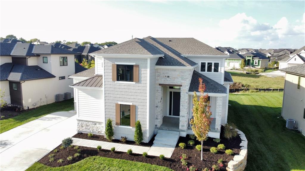 BRAND NEW PLAN: MUST SEE 1.5 Story with split car garage, the Birmingham II by SAB Homes located on Lot 165 is ready for MOVE IN! From the moment you step into the grand entry, you will be delighted by what you find. The large great room with tile trimmed walls, side cabinets and plenty of windows with a soaring 2-story ceiling. The kitchen is made for a chef, with a 5 burner gas cooktop, convection oven, large quartz island, walk-in pantry with prep kitchen with a 2nd convection oven & 2nd sink! Enjoy a large dining room with built in hutch wall and sliders to enjoy your covered patio. The main floor primary suite is a calming retreat with double vanities, walk-in shower, freestanding tub, plus a large walk-in closest with its own laundry hook-ups. The upper level features a unique loft for gaming or craft room at the top of the stairs with plenty of natural light. There is a space for everyone with four bedrooms upstairs, each with a walk-in closet. plus a second floor laundry room with a sink. The best part is the split garage with added room for storage. Outside features a large front porch with real stone trim, beautiful rock wall, landscaping and sprinkler system. Enjoy the large level backyard ideal for pool or easy main level access form the covered back patio. Century Farms neighborhood has a spectacular club house with a fitness center and resort style swimming pool with slide. There are plenty of neighborhood activities with a fire pit, two pickleball courts and a basketball hoop, farm themed animal kids play area and a community garden. Century Farms is conveniently located near the brand new Bluhawk shopping center, Heritage Park, the Johnson County Trail system and the Overland Park Arboretum.  Come join the fun in Century Farms, a unique one of a kind upscale new home community in Overland Park. BLUE VALLEY SCHOOLS