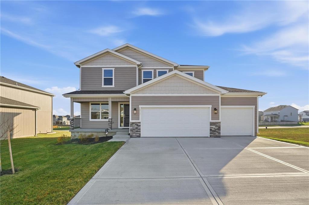 Available for quick move! This “Crestwood,” features the charming 'Craftsman' front elevation style where comfort and style converge in this spacious 4-bedroom, 3.5-bath 2-story floorplan. Immerse yourself in the spacious primary bedroom suite, adorned with dual walk-in closets for the ultimate in luxury. With a versatile Flex / Office space, a welcoming Entry Foyer opening to the Living Room, Dining, and Kitchen areas, “Crestwood” is designed to inspire a sense of home that goes beyond the ordinary, offering a perfect blend of functionality and charm for a life well-lived. This home features our Enhanced Curated 'Flawless & Flourish' Design Package, a set of (3) transom windows in the primary bedroom, cozy fireplace in the living room and a 12 x 12 covered deck. The foundation includes our daylight window package allowing additional natural light into the basement. This home boosts a stylish accent wall and wood flooring in the flex room, upgraded tile selections in the laundry room & upgraded kitchen backsplash tile. Stoney Creek HOA fee only $640 annually includes trash, recycling, planned social activities, clubhouse, 3 pools, walking trails, playground, volleyball and sidewalks adjacent to Osage Trails Park.