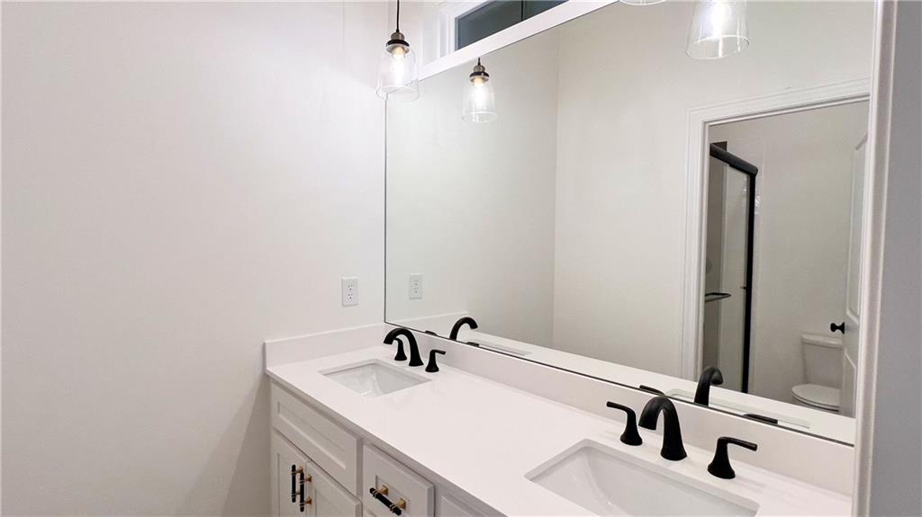 Walk into this home and take in the spacious, open floor plan! Ceilings nearly 18 feet tall, a deep, wooded backyard, a main floor master bedroom, and so much more! Outside, so many elegant touches: stone accents, underground sprinklers, a covered porch and beautiful landscaping (when finished). Home interior is not yet finished, but when done, it will have quartz countertops, engineered wood floors, designer finishes and fixtures. However, there's still time to pick your finishes and fixtures on to customize this home and make it your own! Listing agent has ownership interest in the home. Pictures and virtual tour are of a similar home.