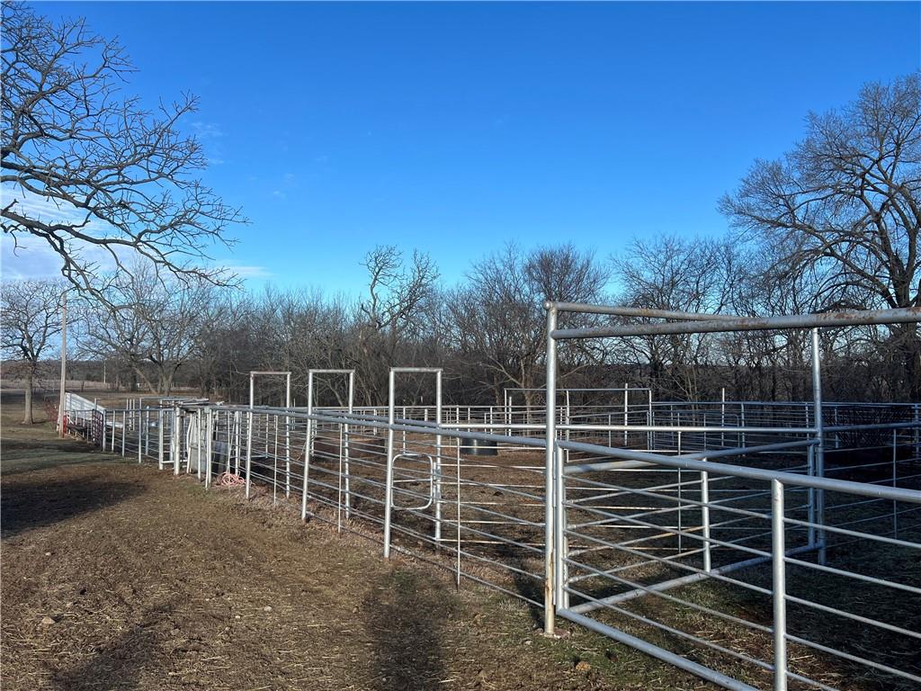 This fully fenced 70+/- acres in Pawnee County has it all. As you pull off of county road 3580 into the gated entry you are greeted by a long driveway that leads up to the barn and 2bed 2bath home. The home has incredible morning coffee views over the hay field to the east with a perfect sitting area on the north side off the laundry room. Surrounding the home you will find several outbuildings including 2 barns and an equipment shed as well as a detached two car electric door garage. Adjacent to the garage is a large, well established chicken house that will suit several dozen birds easily. Situated southwest of the home across the pasture is a fully stocked largemouth bass pond that holds great water all year around. Making your way west of the house you will travel along side a productive hay meadow routinely bailed each year. As you travel on west through the pockets of timber adjacent to Hellroaring Creek, there are ideal locations for multiple food plots with a shooting house already in place. Quality whitetails and turkey can be found throughout with great history to prove it. With many trail systems already established throughout, this ground offers ease of travel from fence to fence. Turn-key places such as this don't come around very often and whether you're looking to graze, hunt, or play, this property accomplishes all three.