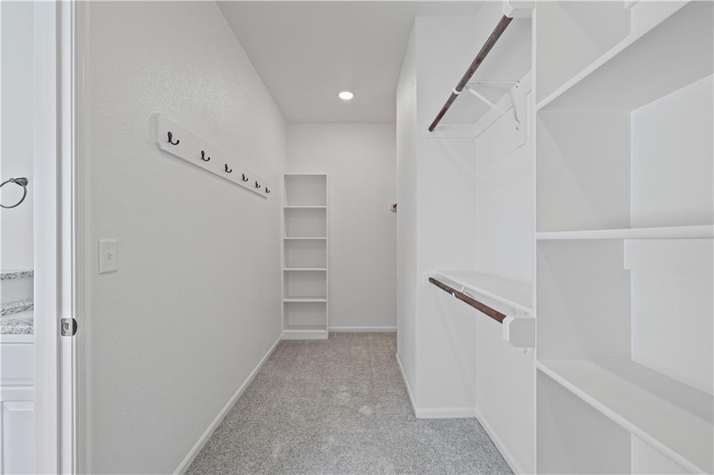 The Peyton-Expanded by Hoffmann Custom Homes is a reverse 1.5-story with 3 bedrooms and 2 baths on the main floor, designed with open sightlines, soaring ceilings, and wide-plank engineered hardwood floors. The kitchen features light granite countertops, black hardware and faucets, a cooktop, wall oven, hood, and microwave. A neutral stone fireplace with enameled wood trim accents anchors the great room. The primary suite includes double vanities, a freestanding soaker tub, comfort-height stools, and convenient access to the laundry room. Two additional main-floor bedrooms offer walk-in closets and share a full bath. The finished lower level adds a spacious rec room, wet bar, 4th bedroom, and 3rd full bath—perfect for entertaining or guests. Built with 2x6 exterior wall construction, Pre-wired for easy solar panel installation, 10-year structural warranty, EV car charging receptacle, and energy-efficient features for long-term peace of mind. The home is fully complete; photos represent the property as built.