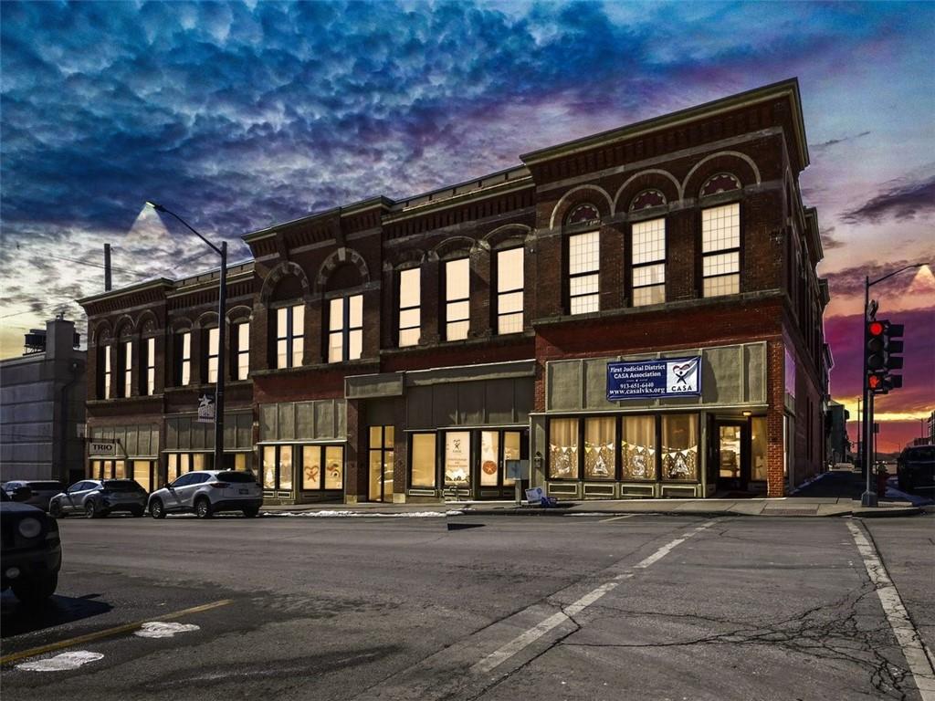 Commercial and Residential Building in a prime location, in Downtown Leavenworth. This is the O"Donnell Building built in 1890. The building has been very well maintained. There are currently 2 commercial space and 9 residential units. This is a great business opportunity all units are leased at 100% occupies. The larger commercial space has a 7 year lease that will convey with the sale of the property all other tenant have 1 year leases. Each commercial space has a separate entrances. The residential units have 2 common area entrances, that leads to a common hallway/staircase/1 small elevator to gain access to private front doors. The residential units share a large laundry room located near all the residential units. Located on a conner lot, with store front street parking, and a public parking area located directly adjacent to the West side of the building for coinvent residential parking