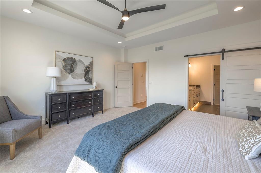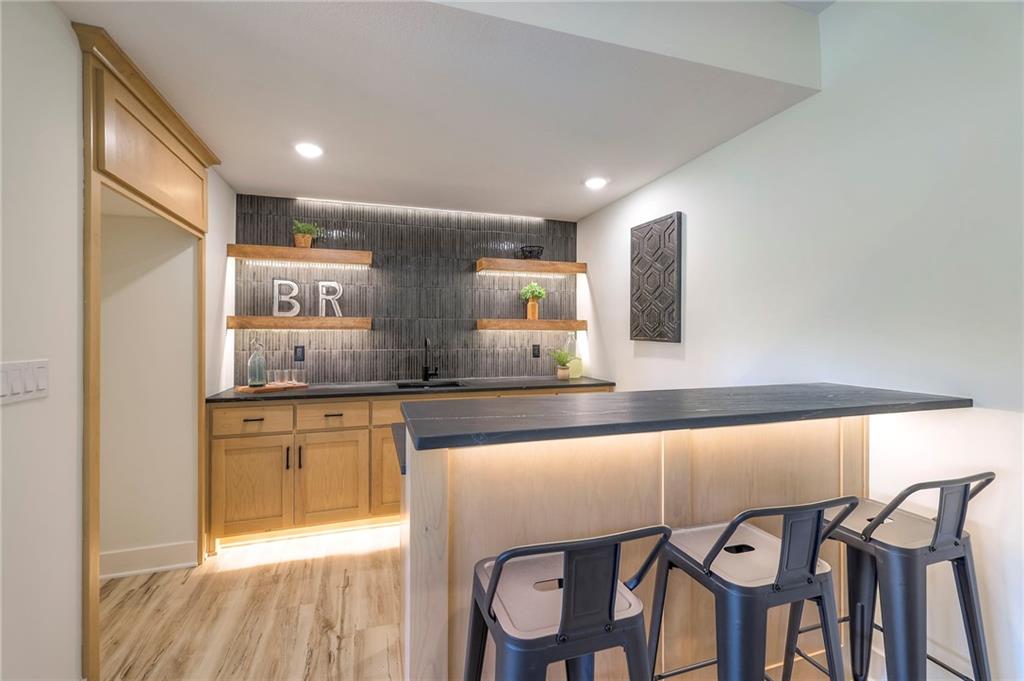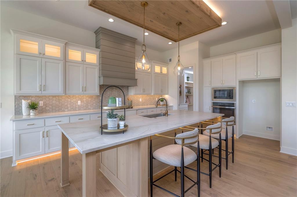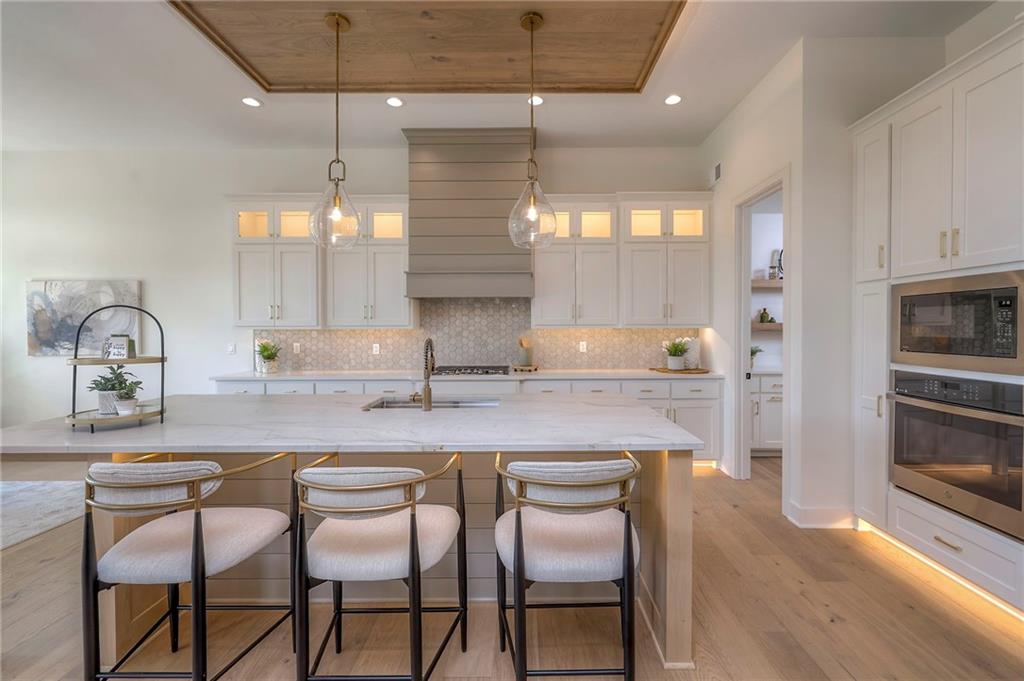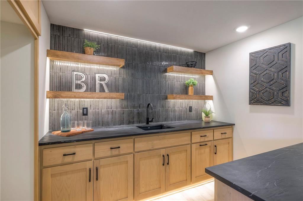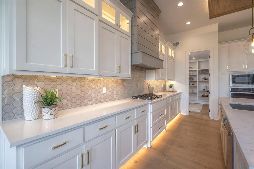 Stunning and spacious Lyle Reverse plan by Bryant Ratliff with 4 Bedroom and 4 Full Baths. Large entry greats you into this open and spacious floor plan. Great room has hardwood floors, soaring ceiling and floor to ceiling stone fireplace. Kitchen features custom cabinetry, oversized island, stainless appliances, walk-in pantry, & access to huge covered deck. Large master suite with custom tiled large shower and sizable walk-in closet with access into the laundry. 2nd bedroom and full bath on main floor. Lower level features family room w/custom tv wall, bar area and 2 additional bedrooms each w/their own baths. Walk out to a patio with large yard backing to bermed greenspace. Home is located on an estate lot and includes lawn irrigation. Home is located in Woodland Trails, an outdoor lifestyle community featuring miles and miles of paved walking trails, resort style pool, playground, sports field and fishing ponds.