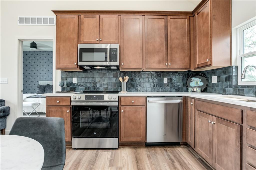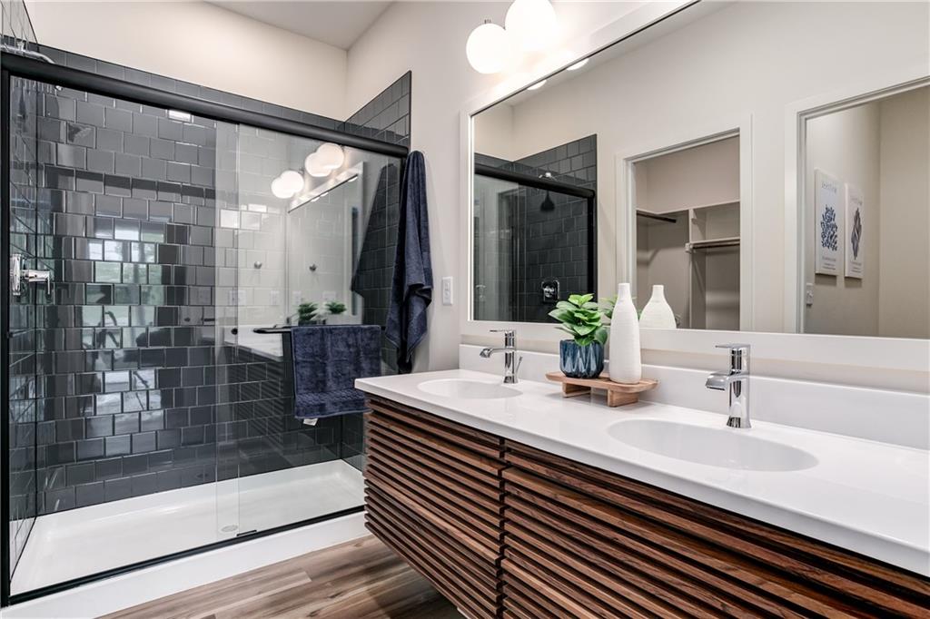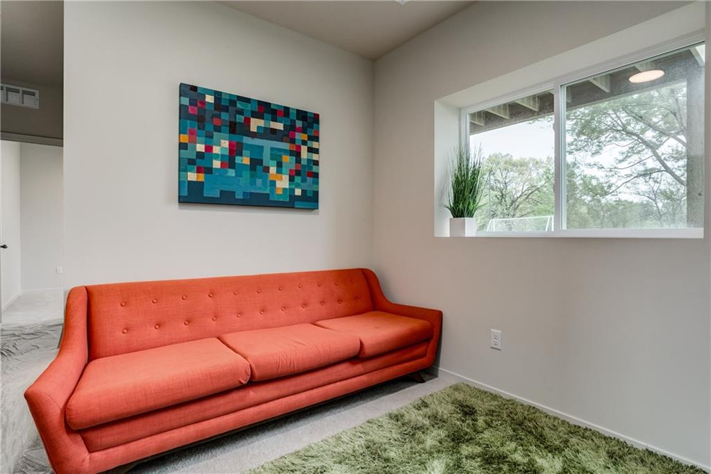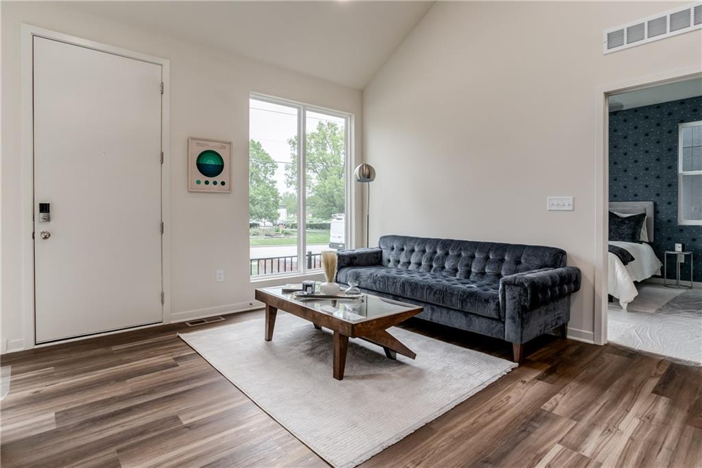 Welcome to Elevate Design + Build's Linen plan. This mid-century modern plan comes with multiple unique features. Enjoy the cool night in front of your terra flame solo stove with pipe to ceiling designed by Elevate. The home has 9 foot ceilings upstairs and downstairs. The custom breezeblock wall adds to the character of the house.