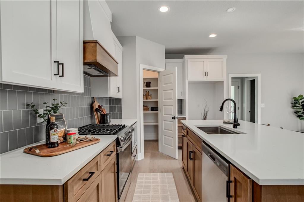 The new Makula two story Plan by Elevate Design + Build offers a modern design, clean lines, and functionality. This unique plan has an open concept layout on the main level that is flooded with natural light. Just off the gourmet inspired kitchen is a large covered private outdoor living area complete with grilling station. Beyond the private outdoor area is the detached two car garage. The upper level has three spacious bedrooms, spa like primary bath suite and dedicated home office with built-in desk and floating shelves. This home is located in the Kansas City school district with several charter private schools nearby. Don't miss out on your dream home, schedule a showing today!